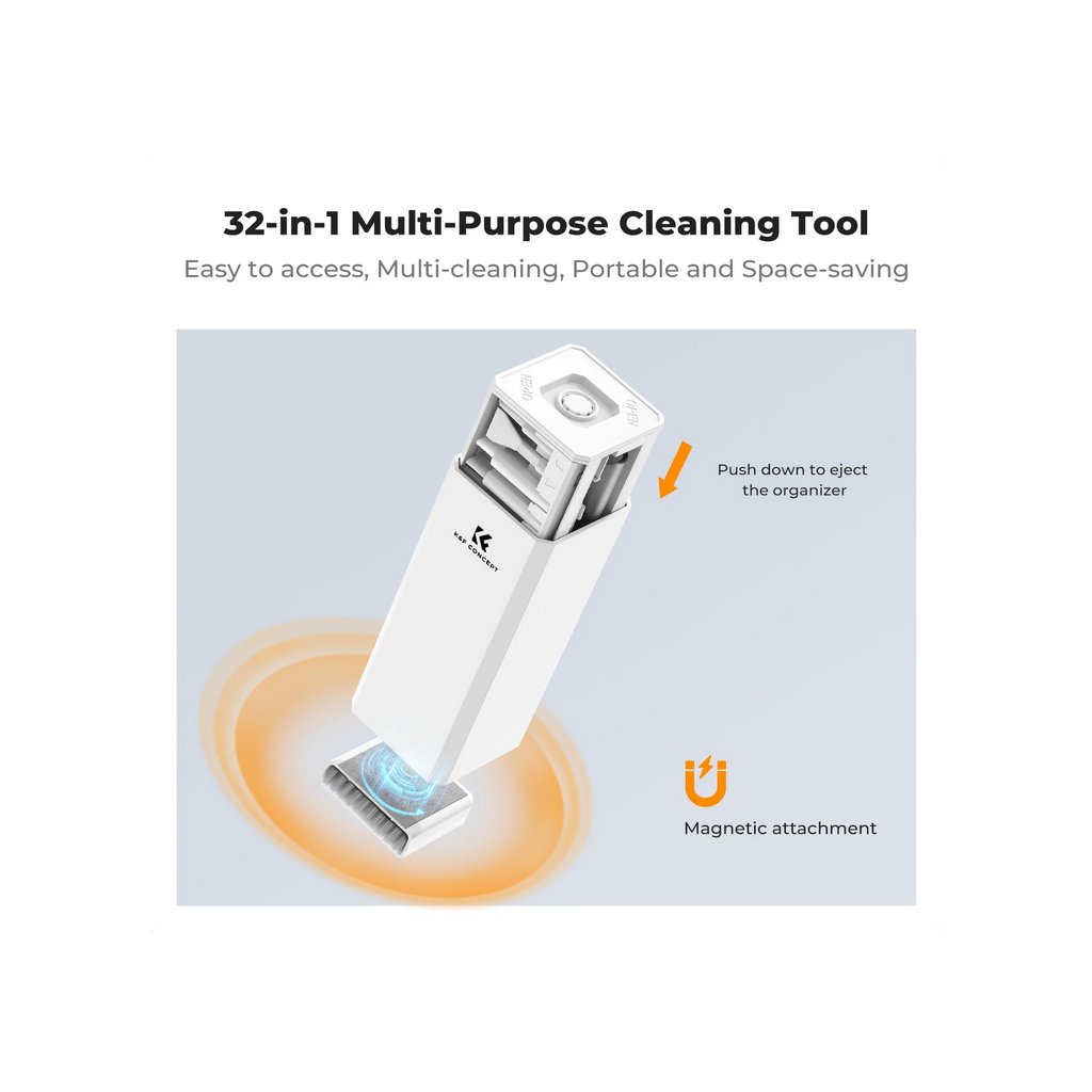K&F Concept 32-in-1 Keyboard Cleaner Kit: Comprehensive retractable brush set for keyboards, phones, headphones, and electronics—includes port cleaners, keycap pullers, microfiber cloths, and more for effortless, deep cleaning.