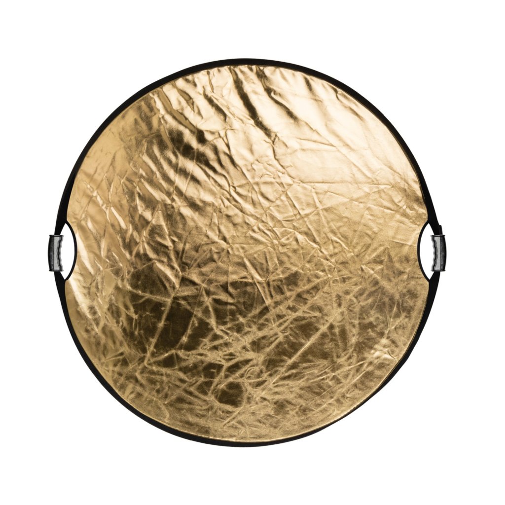 Gold reflector: like a mirror in sunlight but reflects a very warm quality, just opposite to a white reflector.