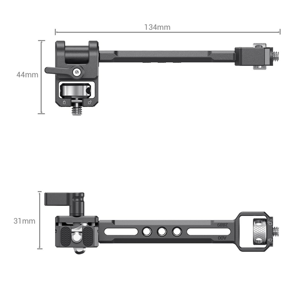 SmallRig Adjustable Monitor Mount for Selected DJI & Zhiyun & Moza Handheld Gimbal Stabilizers 2889 is designed to hold monitor and accessories onto the stabilizers. The monitor mount secures to the ZHIYUN CRANE 3/3S, WEEBILL-S/LAB with a 1/4”-20 screw and the built-in rosette to prevent twists, and mounts to the side of DJI Ronin-S/SC/RS 2/RSC 2 via the rosette adapter plate. Featuring three 1/4”-20 threads for additional accessories such as Cold Shoe 2260 for microphone or sound receiver. The monitor bracket features a 360° tilt range and can hold a monitor rig up to 2.2 lb.