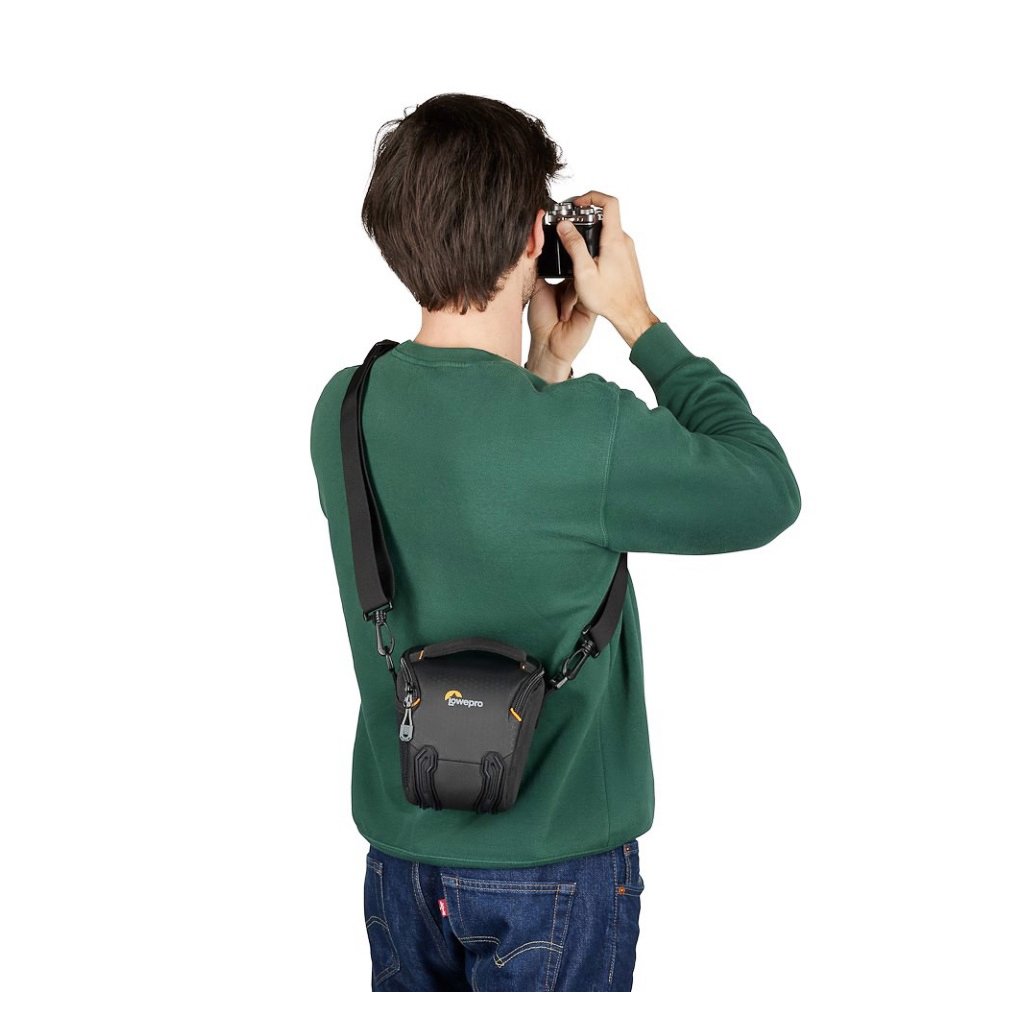 The TLZ 20 delivers rugged protection for camera and lens , can be stored in larger bags or carried via the detachable/adjustable shoulder strap with non-slip patch. Integrated belt loop included, and durable, PVC-free custom-moulded base protects your gear from moisture, abrasion and impact.