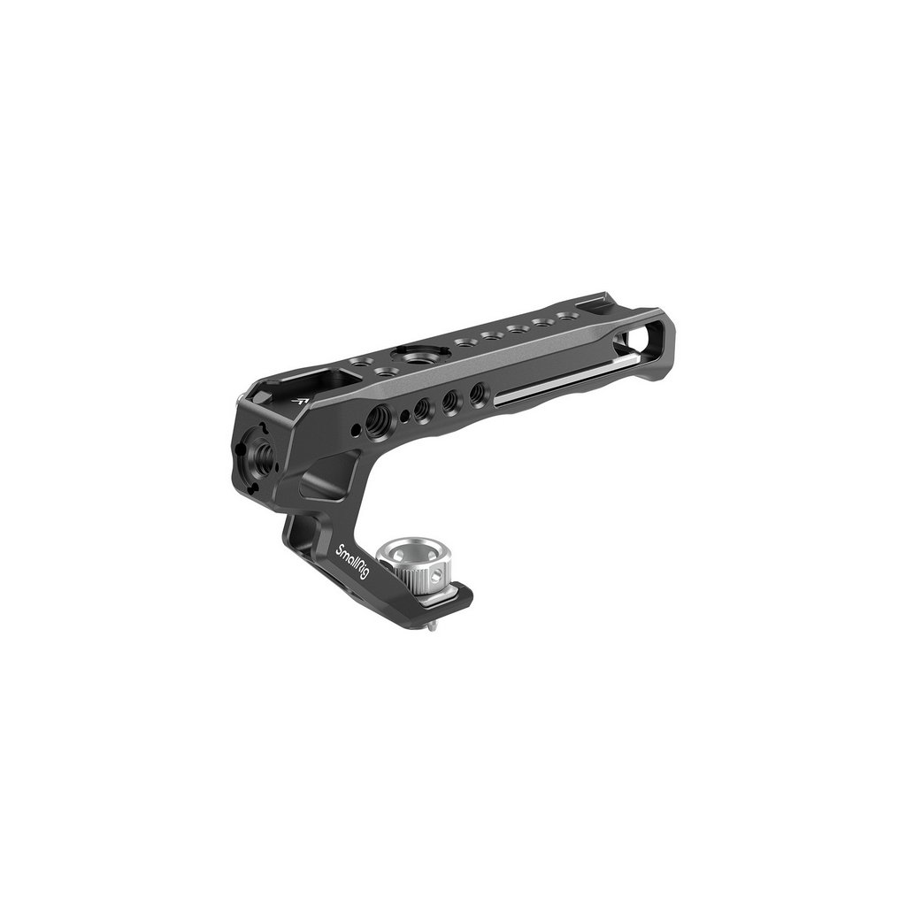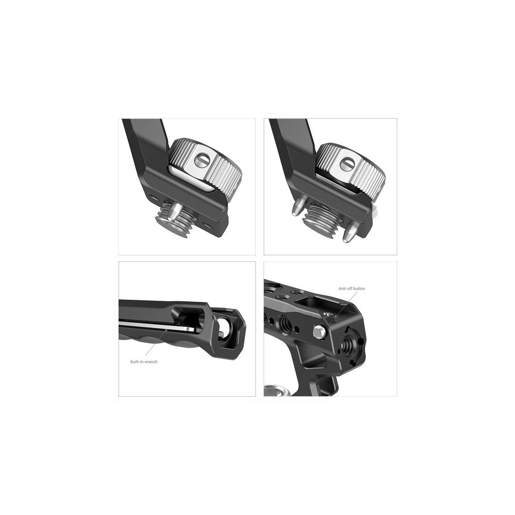 SmallRig Universal ARRI Locating Handle 2165C is an all-in-one and half-handle, with a simple and ergonomically designed to offer a comfortable handheld shooting experience. ARRI-type mounts allow for quick assembly and disassembly; locating pins enables horizontal and vertical attachment while securing the camera. Featuring an all-in-one and half structure, it comes with multiple 1/4"-20 & 3/8"-16 & ARRI 3/8"-16 accessory threads and three cold shoe mounts for monitors, LED lights, or microphones, and a built-in spanner for easy access. The cold shoe mount on the front end of the handle is designed to prevent accidental disconnection. Overall, the lightweight and practical handle can provide a wide range of mounting points and an excellent shooting experience. Note: Please use the Allen wrench to fasten the screws for enhanced stability.