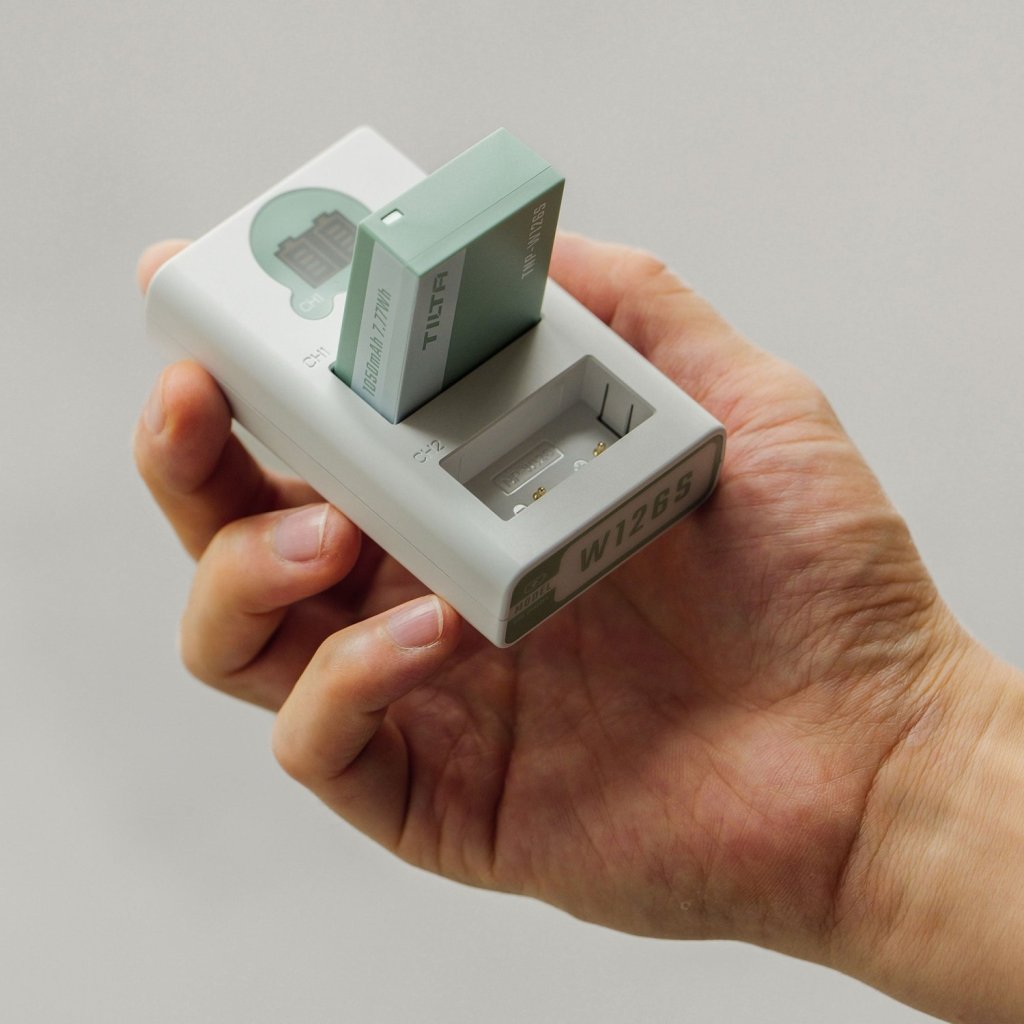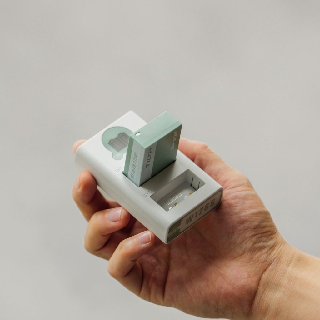 The Tilta Battery Charger for NP-W126S 2 Channel in Ash Green is a compact dual-channel charging solution custom designed for Fujifilm NP-W126S batteries. This charger enables simultaneous charging of two batteries, making it ideal for photographers and videographers who need reliable power management on the go. Its ultralight construction at just 51 grams ensures minimal added weight to travel kits, while the Ash Green PC plus ABS housing provides durability and a professional aesthetic.