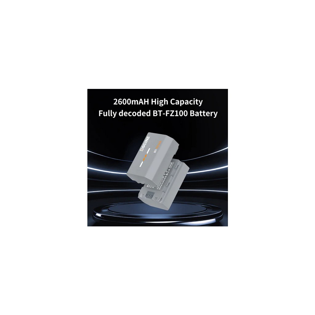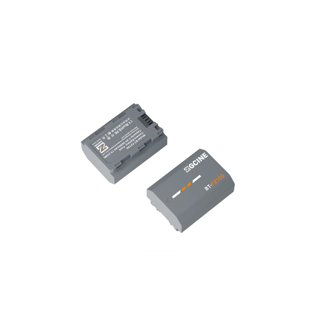 The BT-FZ100 is a fully decoded, high-capacity 2600mAh (7.2V) third-party replacement battery for Sony cameras that performs identically to the original NP-FZ100 – no pop-ups, full camera communication, and exact same physical size – while adding fast-charge support (full charge in ~2.5 hours with ZGCINE PS/PC chargers) and premium 8-layer safety protection.