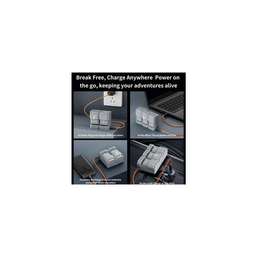 - Fast charging capable (~2.5 hours with ZGCINE PS/PC series chargers)