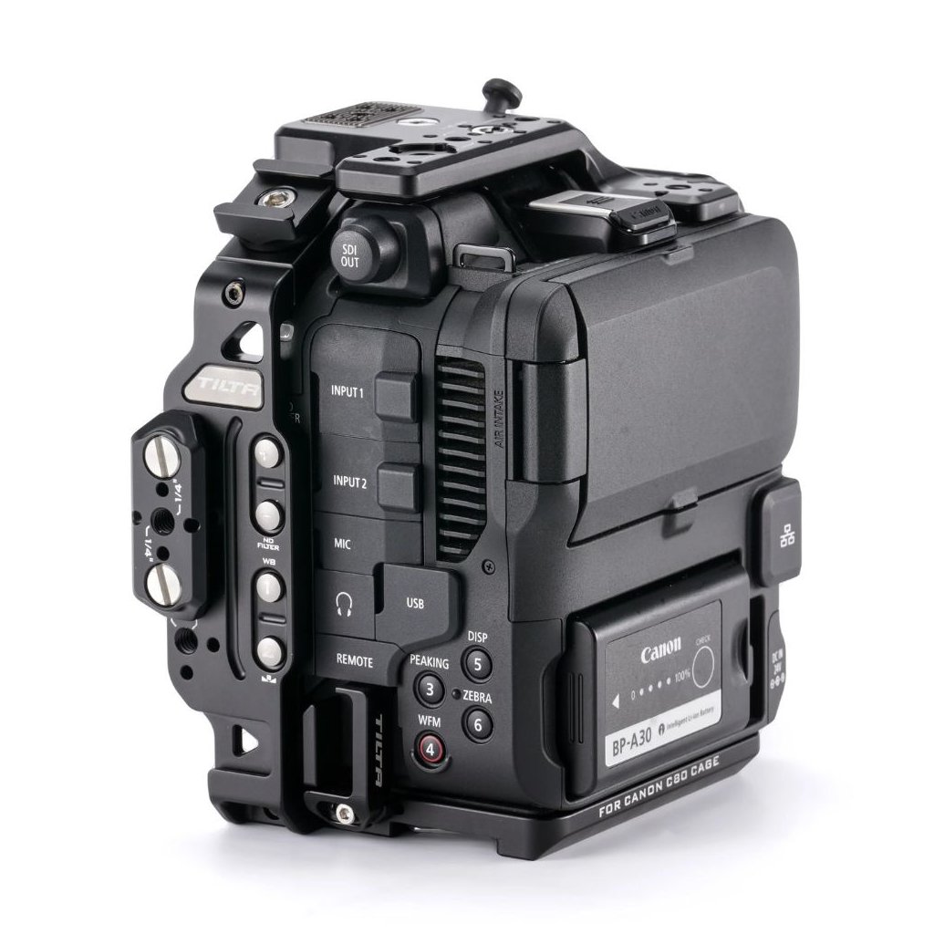 This cage provides additional protection for the Canon C80 camera body while expanding the mounting options for various accessories.