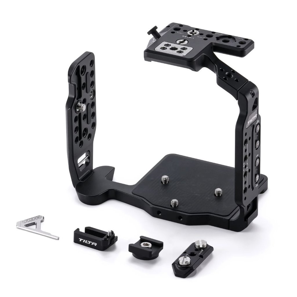 A unique feature of this cage is the side plate with integrated button extensions for the camera body that provide tactile response and easy access. On the opposite side plate are precisely aligned mounting points that allow the quick release plate to be easily attached and the camera to be rotated to a vertical position.