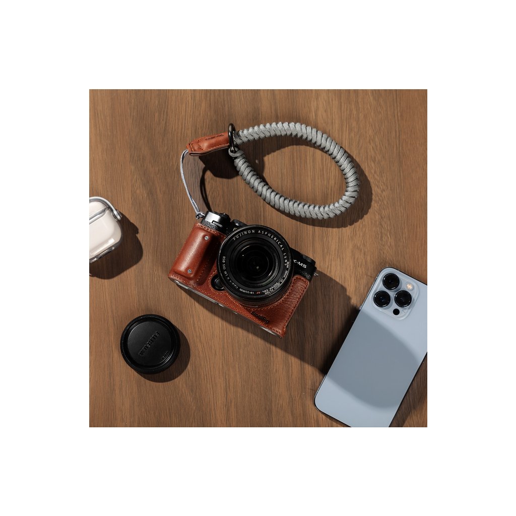 The SmallRig Camera Leather Half Case Kit for FUJIFILM X-M5 (Brown) combines style and protection, crafted from durable top-grain leather. This elegant case features a soft suede lining for a precise fit, an integrated tripod mount, and unobstructed access to key camera features, along with a stylish wrist strap for portability.