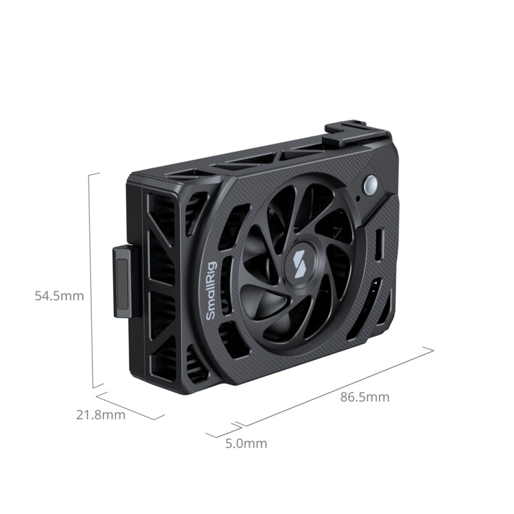 SmallRig Cooling Fan for Canon EOS R5 Mark II & R5 5063 is engineered to address overheating issues in Canon mirrorless cameras, enabling extended high-quality video recording sessions. Its advanced cooling system, which pairs a 7000 RPM fan with TEC cooling technology, ensures optimal heat dissipation and prevents camera overheating. The dual-speed fan features high-speed and low-speed modes to accommodate various shooting scenarios. Its tool-free snap-on design enables quick installation and removal, ensuring easy access to both the fan and the camera’s LCD screen.
