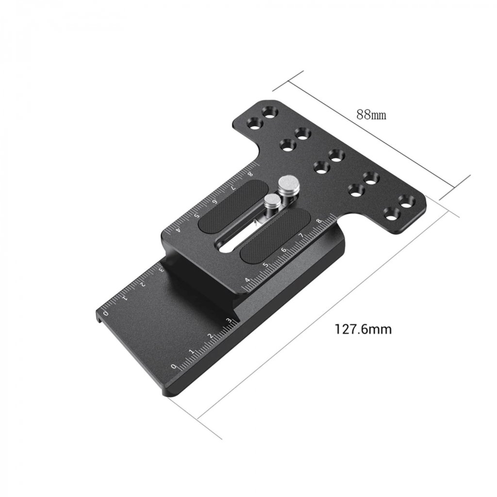 SmallRig Counterweight Mounting Plate for Zhiyun CRANE 3 LAB Handheld Stabilizer BSS2402 is designed to replace the original camera plate that comes with Crane 3 and allows you to balance front-heavy camera setup by adding counterweights at the rear. The plate secures to the bottom of camera via a 1/4 screw or both 1/4 "and 3/8 "screw for Camcorders. It features rows of 1/4"-20 threaded holes to support counterweights. OptionalCounterweight 2459 (50g), 2284 (100g) and 2285 (200g) are sold separately. The top of the plate features rubber pads to protect the camera from scratching. Additionally, it features two m5 threaded holes on the side to fit the original sliding base of the gimbal and features millimeter scale for easily marking camera position.