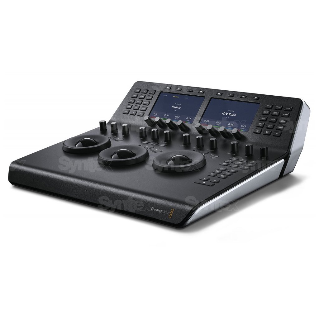 The DaVinci Resolve Mini Panel is a compact hardware control panel that’s ideal for adding color grading to any workstation, and for freelancers that need to take their panel with them when traveling between facilities. The DaVinci Resolve Mini Panel features 3 high resolution weighted trackballs, 12 control knobs dedicated to the powerful primary color correction tools, 18 dedicated navigation and transport keys, and an upper deck with two 5” screens, 8 soft knobs and 8 soft buttons, dedicated keys for switching tools, working with nodes, grabbing stills, navigating the timeline and more.