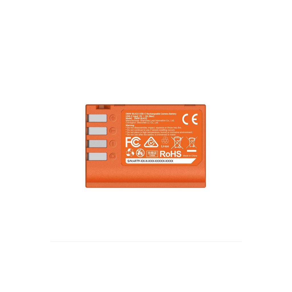 The SmallRig DMW-BLK22 USB-C Rechargeable Camera Battery (Orange) 4979 is designed for Panasonic cameras, offering a powerful 2520mAh capacity for extended shooting sessions. With a USB-C charging port, this battery allows for quick recharging in just 2.5 hours, making it an ideal companion for photographers on the go.