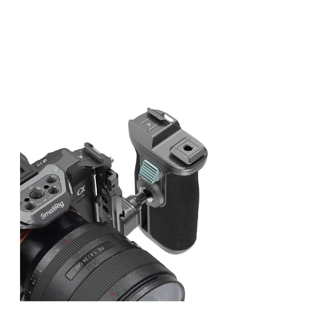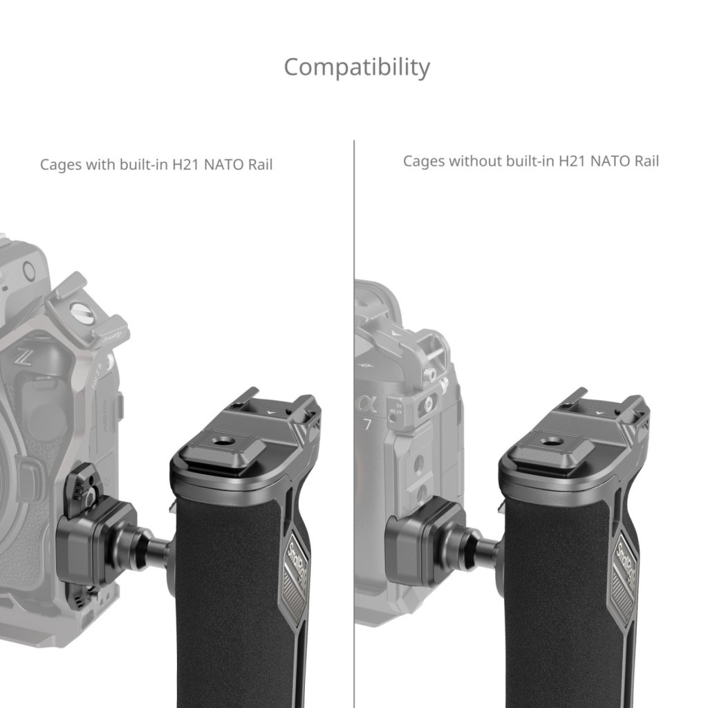 SmallRig HawkLock H21 Quick Release Rotating Side Handle Kit 4485 is designed to enhance stability for handheld dynamic filming. Its universal design seamlessly integrates with standard NATO rails. The handle features an exclusive quick-release slider with a patented self-locking system, facilitating the process of handle mounting. Bi-directional sliding offers freedom in installation orientation. A single press enables the handle to smoothly rotate 360° in both directions, facilitating comfortable camera maneuvering at any angle. The ergonomic design of the handle grip incorporates eco-friendly silicone with a textured surface for enhanced grip and comfort.