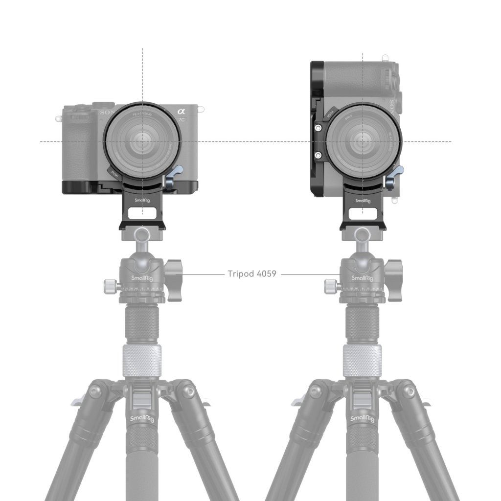 SmallRig Horizontal-to-Vertical Mount Plate Kit for Sony Alpha 7C II / Alpha 7CR 4570 is designed to quickly switch between horizontal and vertical modes without adjusting the lens's optical axis. It locks the bottom of the camera via a 1/4"-20 screw and anti-twist pin and maintains full access to the LCD flip screen and ports and features built-in pads that prevent scratches and twisting.