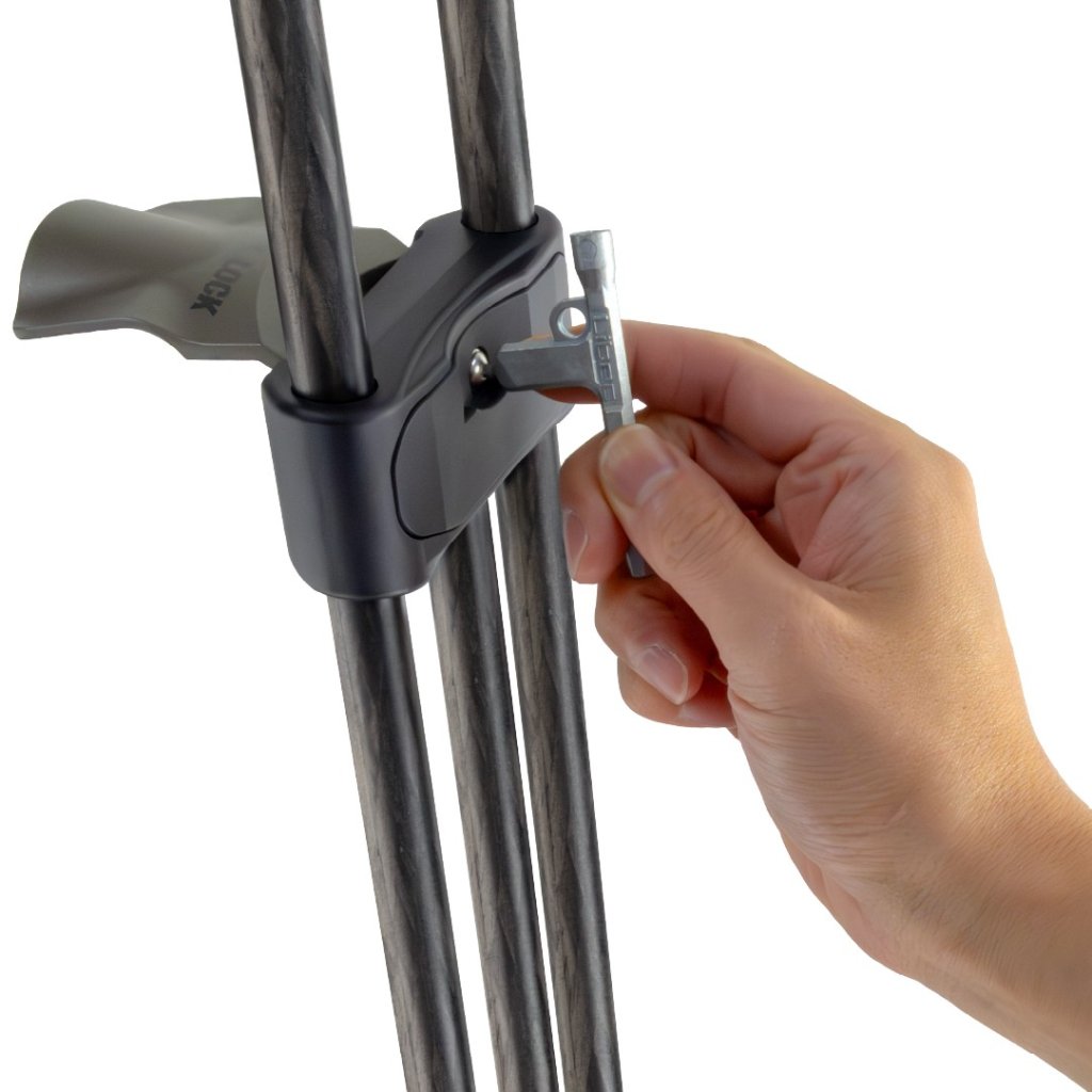 The included tool makes it easyto adjust the strength of the tripod lock. The main advantage is thatthe leg lock mechanism is less prone to looseningthanconventional quick-release tripods.