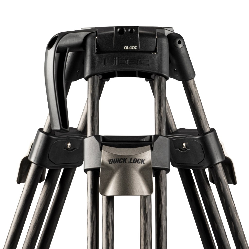 TheQL40Ctripodis basedon the popular Quick-Lock QL40B tripod and is madeof carbon fiber. The tripod hasa single, patented locking mechanismatthe top of the tripod, which is specially designed for easy height adjustment. The flip-lock system, also a patented solution, allows forquick locking and unlocking of the tripod, significantly reducing the time needed to set it up. The absence of a bottom lock eliminates the need to bend over, reducing the strain on the user.