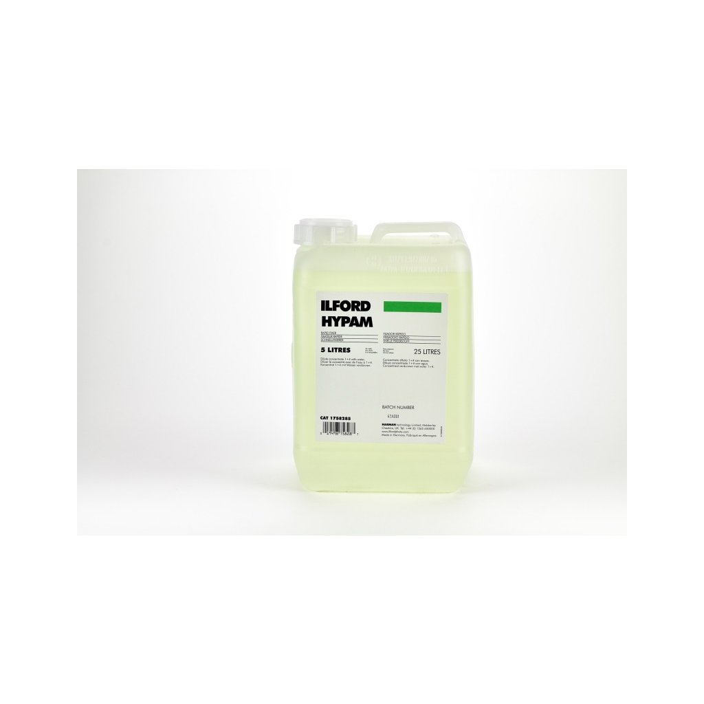 ILFORD HYPAM je netvrdnúce, ľahko použiteľné rýchlotvrdnúce lepidlo. Táto univerzálna chémia sa dodáva ako tekutý koncentrát a je vhodná pre všetky čiernobiele filmy a fotopapiere na ručné aj strojové spracovanie. ILFORD HYPAM možno použiť aj na fixáciu iných špeciálnych materiálov vrátane röntgenových filmov, vedeckých produktov ILFORD a grafických materiálov. Z 5 l koncentrátu HYPAM sa vyrobí dostatočné množstvo fixačného roztoku na fixáciu čiernobielych filmov s rozmermi 600 x 135-36 alebo fotografických papierov RC s rozmermi 2000 x 20,3x25,4 cm (8x10 palcov) alebo fotografických papierov FB s rozmermi 1000 x 20,3x25,4 cm (8x10 palcov). HYPAM neobsahuje tvrdidlá.Dodatočné parametre