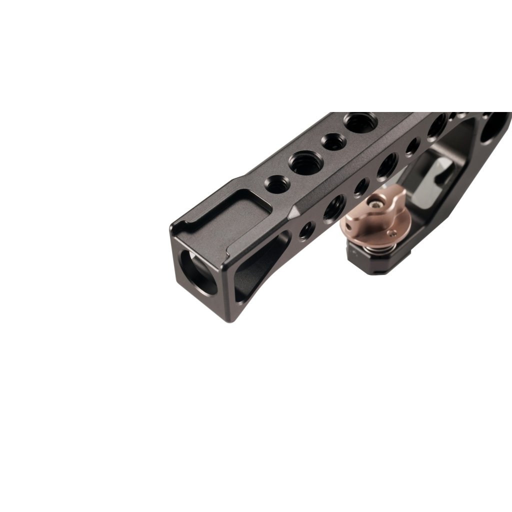 This quick-release top handle easily and securely attaches to the top of the half and full Tiltaing camera cages.