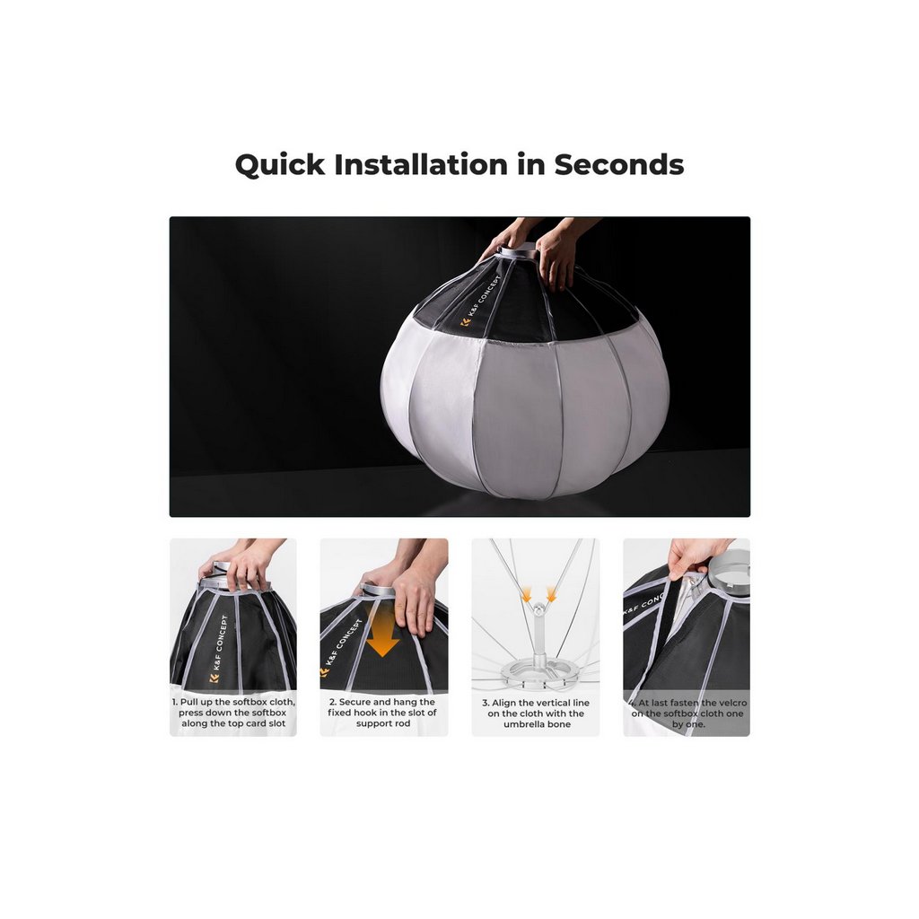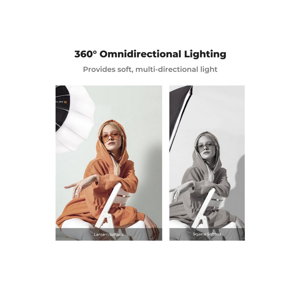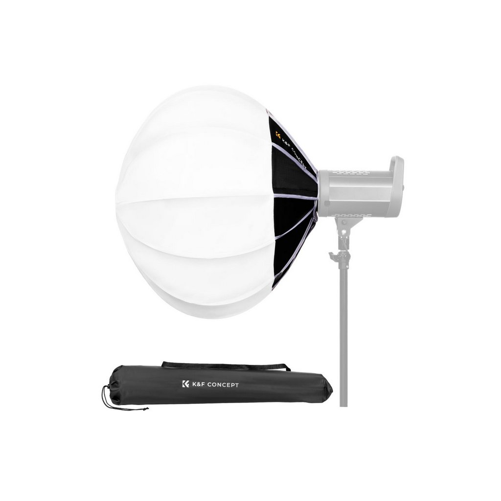 Achieve uniform, 360° soft lighting ideal for studio use with the K&F 65CM Lantern Soft Light Box. Perfect for photographers and filmmakers who need efficient and portable lighting solutions.