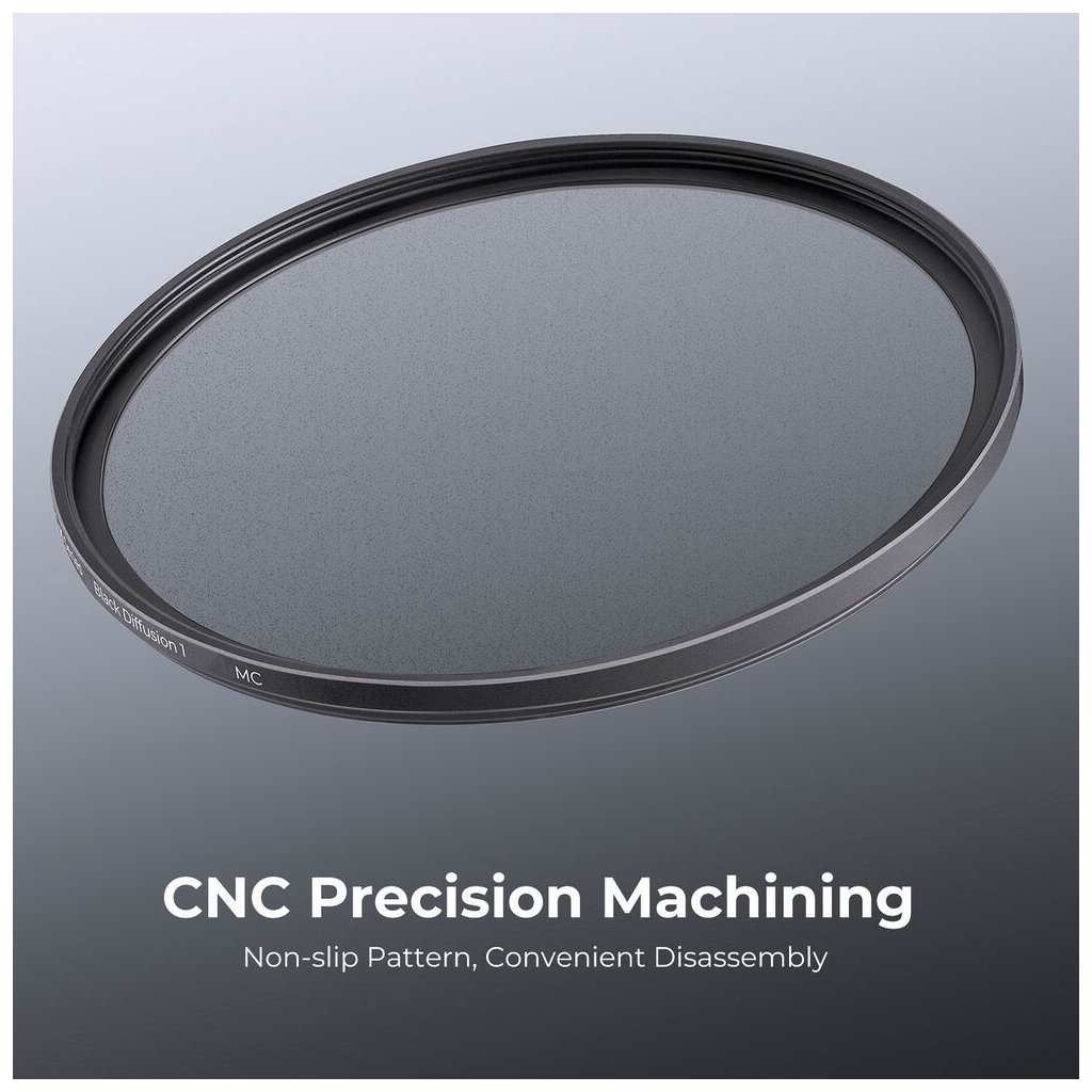Enhance your photography with the K&F Concept 72mm C-Series Black Mist Filter from the Classic Series. This Grade 1 black diffusion filter gently softens highlights, reduces harsh contrast, and delivers a professional cinematic glow while maintaining image sharpness. The ultra-thin multilayer green coating minimizes color cast and ensures excellent light transmission. Constructed with a sturdy aluminum ring, the filter is lightweight yet durable. Featuring a 72mm rear filter thread for secure lens attachment and a 72mm front accessory thread for additional filters or lens caps, this circular filter is versatile for portraits, landscapes, and creative photography. An essential tool for photographers seeking cinematic effects.