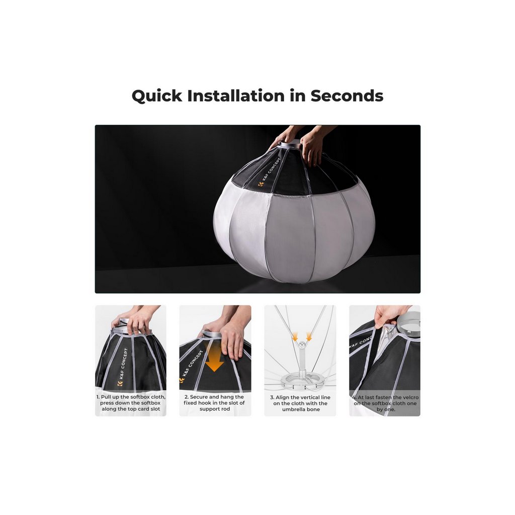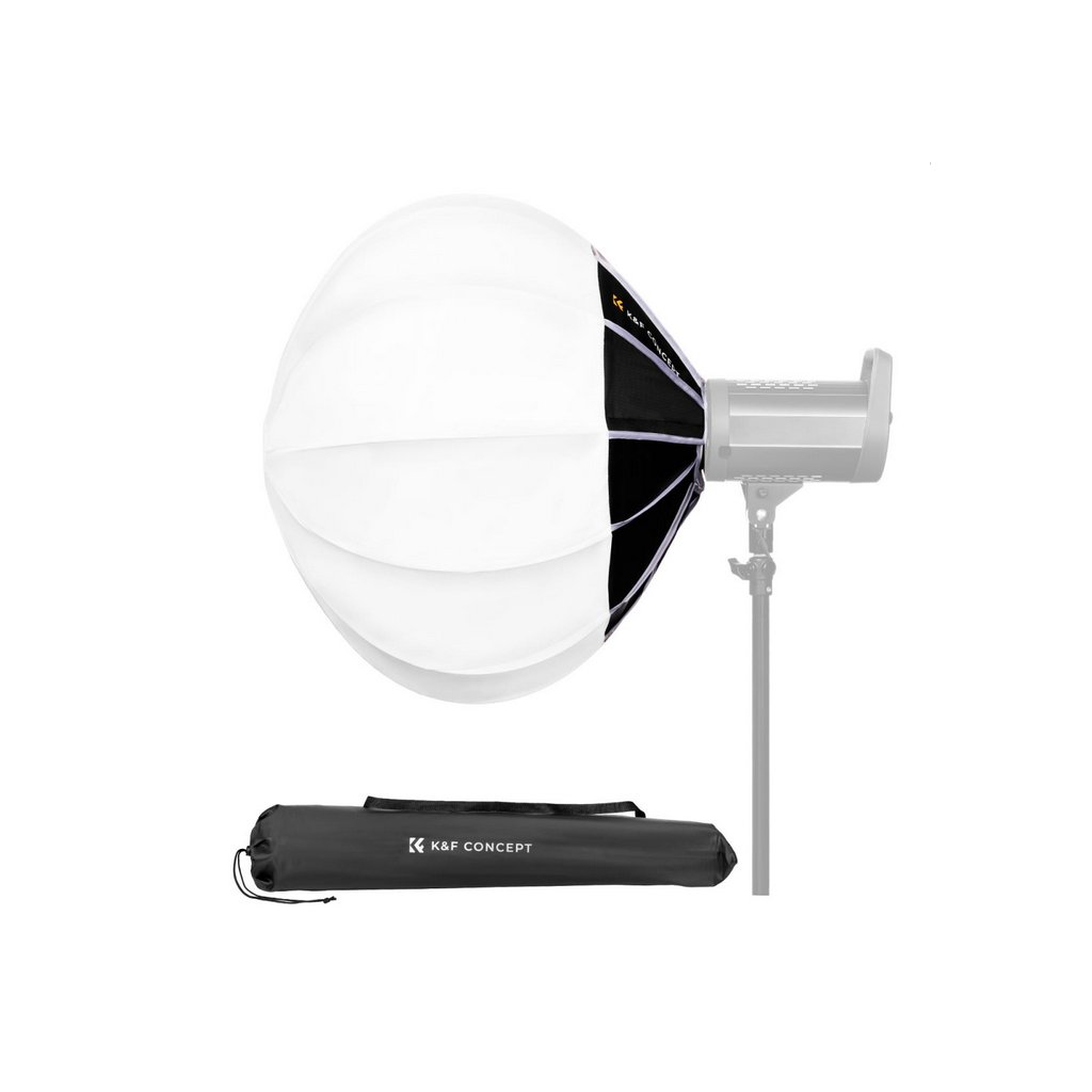 The K&F 85CM Lantern Soft Light Box is designed for photographers and filmmakers who need versatile and efficient lighting solutions. Its spherical design ensures 360° omnidirectional soft light, making it perfect for studio use by spreading light evenly with a 270° beam angle. This lantern softbox is ideal for creating soft, even lighting across a wide area with a single light source.