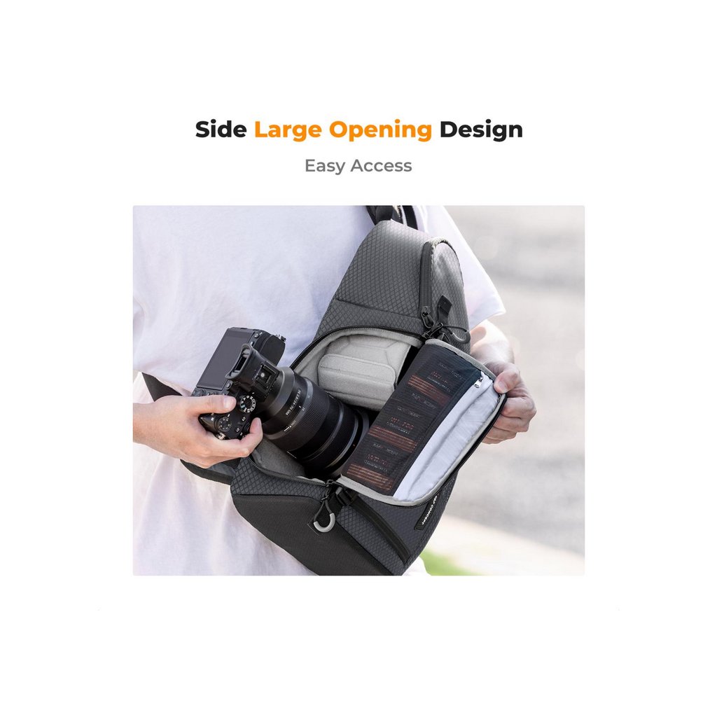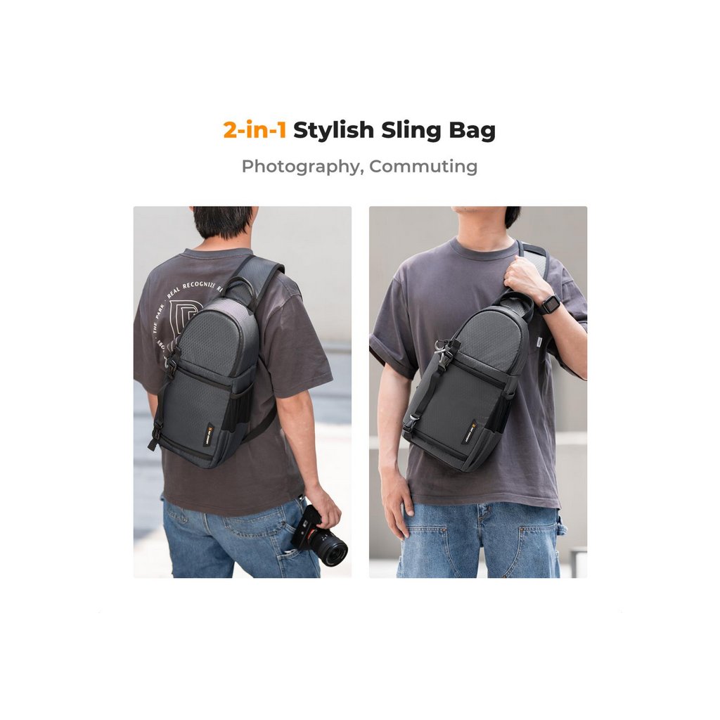 The K&F 10L Urban Wander 02 Sling Bag in gray is a stylish, durable, and spacious camera bag designed for DSLR, SLR, or mirrorless cameras. Its slim body, smart compartments, and adjustable strap make it ideal for travel and outdoor photography.