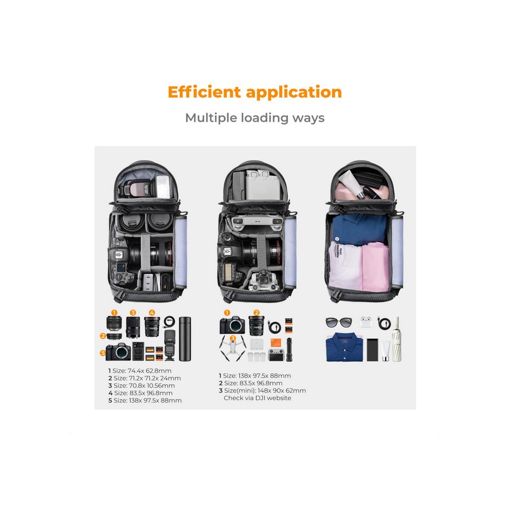 - Spacious Design: Compact 10L capacity with compartments for cameras, lenses, and accessories.