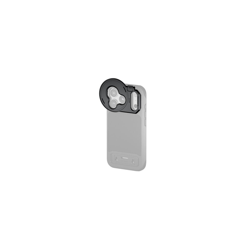 he Khronos 58mm Filter Tray allows mobile filmmakers using the iPhone 17 Pro Khronos Case to seamlessly integrate professional-grade filters into their shooting workflow. Its primary function is the MAGNETIC CONNECTION, which makes it incredibly easy to attach or detach compatible 58mm magnetic filters, enabling swift changes in lighting conditions. For reliable operation, the tray features a SECURE CONNECTION method: it slides directly into a dedicated slot on the Khronos Case and is further locked into place by a safety buckle with a Quick Release Latch, preventing any accidental detachment during filming. This accessory is specifically COMPATIBLE with 58mm Magnetic Circular Filters (filters sold separately), opening up creative possibilities with ND, Mist, or Polarizer filters on your iPhone 17 Pro.