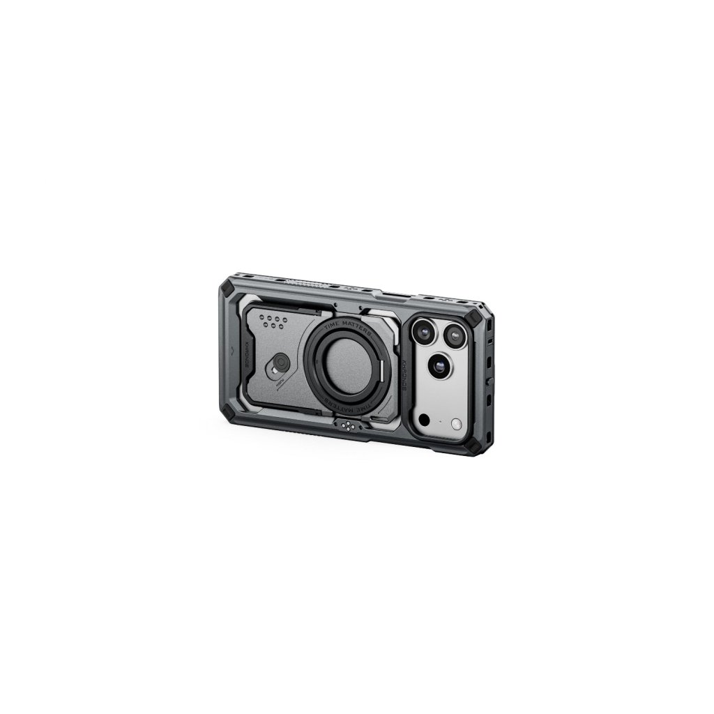 The Tilta Khronos iPhone 17 Pro/Pro Max Case in Space Gray is the foundation of the Khronos mobile filmmaking ecosystem. This robust, camera-cage-inspired case offers reliable protection, a quick-release snap-in design, multiple mounting points with a secure locking clamp mechanism, and innovative integrated electronic contact points to pass power directly to accessories via an optional Power Handle.