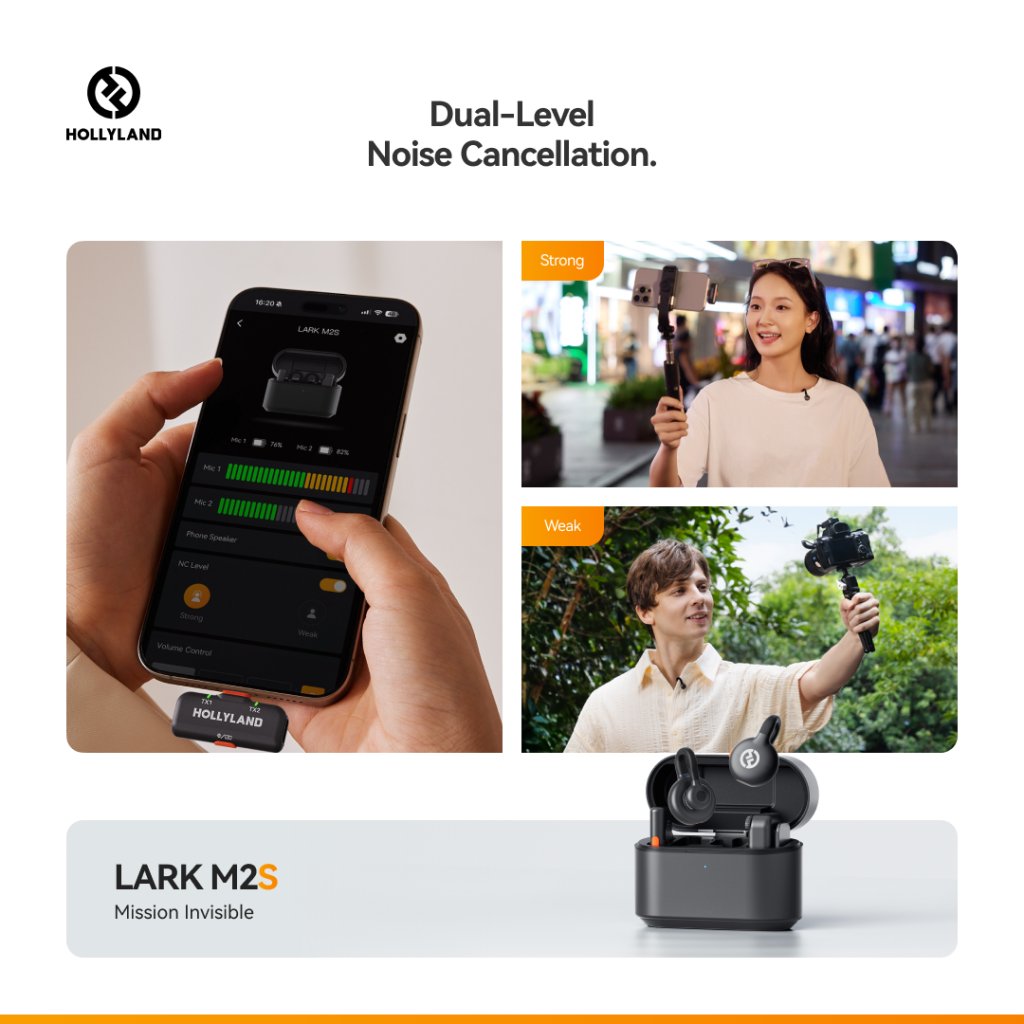 The Hollyland LARK M2S Wireless Lavalier Microphone Mini Combo offers a compact, high-performance solution for capturing crystal-clear audio. Featuring a cutting-edge Ti+ design with no-logo invisible fit, this system ensures an unobtrusive and sleek look during use. Equipped with 48 kHz/24-bit high fidelity recording and environmental noise cancellation, the LARK M2S captures every detail with clarity, even in challenging conditions.