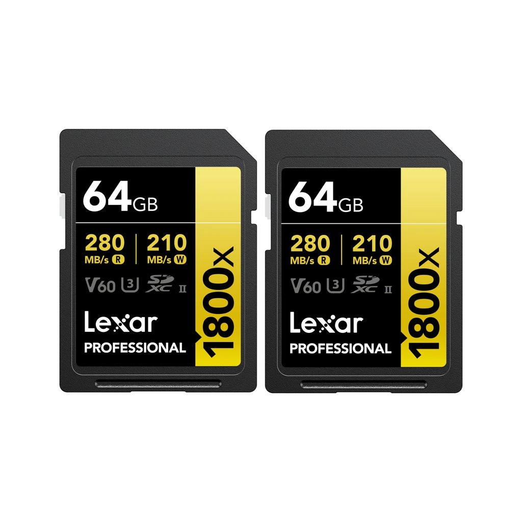 Lexar SDXC Pro 1800x U3 UHS-II R280/W210 (V60) 64GB - 2pack
