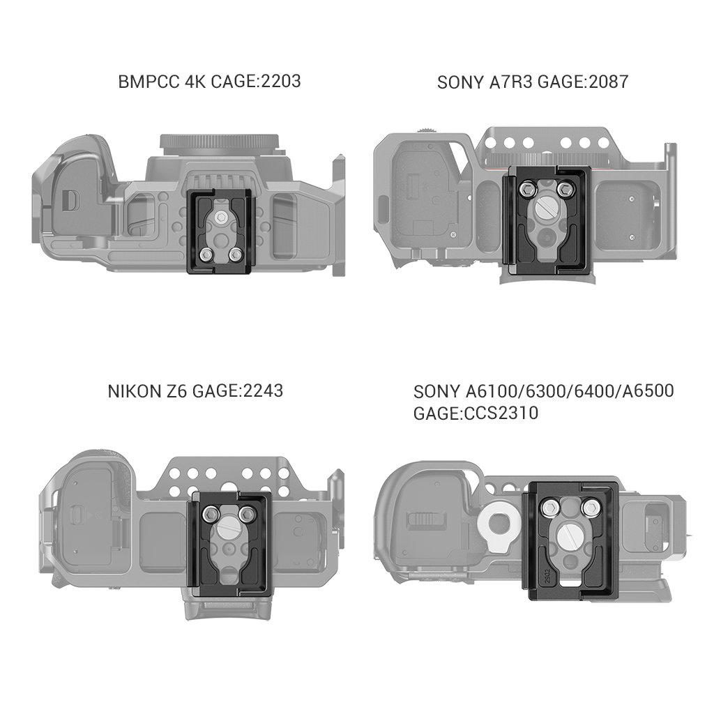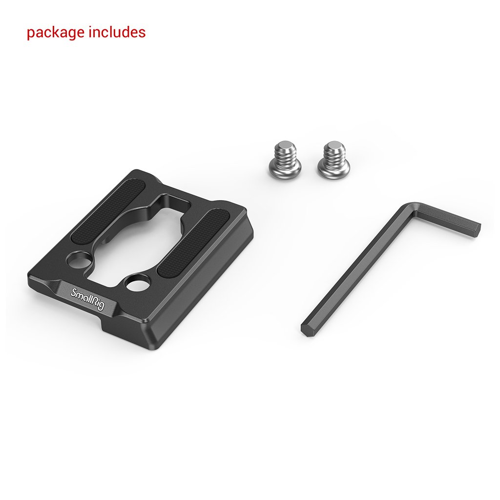 SmallRig Manfrotto 200PL Type Quick Release Plate for Select SmallRig Cages 2902. The middle hollow design does not block the locking screws at the bottom of the cage, which can be quickly released in 3 seconds(Internal test result). Cameras can be disassembled directly when the Manfrotto plate is installed, convenient for fast switching from the tripod. Attach to a cage with two 1/4"-20 Screws. The built-in rubber pads prevent scratching cages. Small and lightweight, only 26g.
