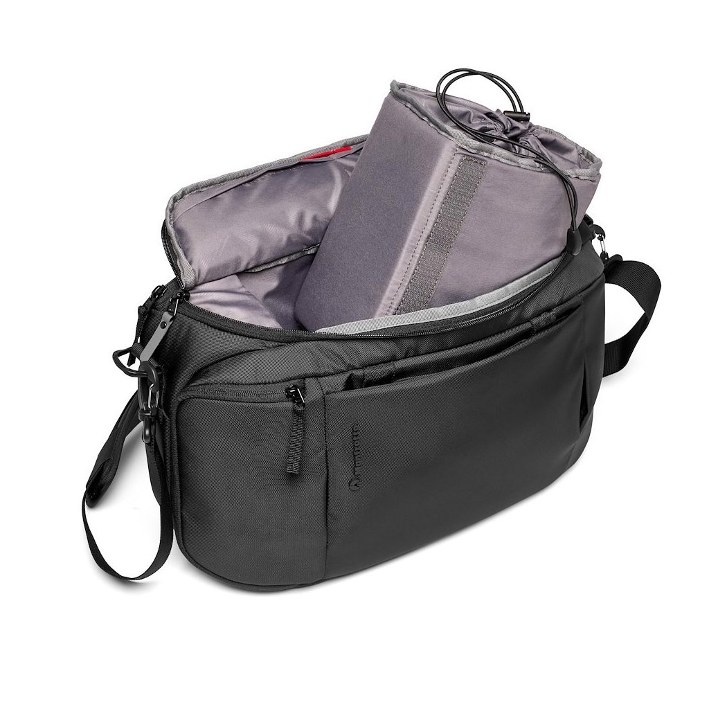 Manfrotto Advanced Hybrid Backpack III je extrémně všestranná 3v1 taška na fotoaparát: batoh, brašna přes rameno a taška s horním úchytem. Tento batoh je ideálním společníkem na cesty pro street fotografii. Jedná se o univerzální tašku, kterou lze použít jako tašku s horním úchytem, brašnu přes rameno nebo batoh. Flexibilita již není problémem a všechny potřeby jsou zohledněny. Stačí připevnit nebo odejmout ramenní popruh, aby jste získali potřebné řešení pro přenášení. Rozepněte zadní část pro přístup k ramenním popruhům batohu a jste připraveni k akci. Je navržen pro DSLR a CSC fotoaparáty spolu s vaším notebookem. Má vyhrazený prostor pro osobní věci a fototechniku v hlavní přihrádce s rychlým přístupem. Jeho interiér pojme DSLR nebo bezzrcadlovku až se 2 objektivy. Polstrovaná přihrádka na fotoaparát je vybavena zcela novým ochranným systémem Manfrotto M-Guard™ Protection System. Tento systém je vyroben ze speciální pěny EVA s vysokou hustotou, která poskytuje výjimečnou absorpci nárazů při velmi tenkém profilu. Přizpůsobitelné skládací vzory umožňují maximální všestrannost pro plnou ochranu fototechniky a zároveň maximální využití prostoru. Je zde dostatek místa i pro vaše osobní věci, včetně samostatné přihrádky na notebook, která pojme 14" notebook. Odstraněním vnitřního pouzdra na fotoaparát se okamžitě promění v cestovní batoh nebo tašku. Odolný boční popruh pojme váš malý stativ, například stativ z řady Befree Advanced. Polstrované ramenní popruhy zajišťují maximální pohodlí při nošení a rovnoměrné rozložení hmotnosti. Všechny vnější tkaniny jsou ošetřeny tak, aby byl batoh vodoodpudivý, což lze v případě nepříznivých povětrnostních podmínek dále posílit dodávanou pláštěnkou.Dodatočné parametre