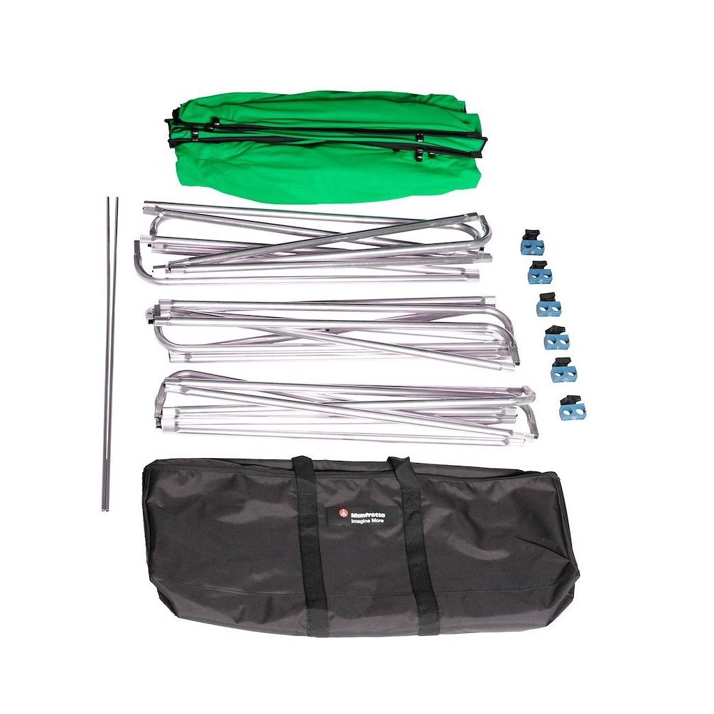 Ideální pro nahrazení pozadí v postprodukci s velkou pracovní plochou o rozměrech 3,87 x 2,77 m , klíčovací zelená Manfrotto FX Portable Background Kit je komplexním řešením pro fotografy a kameramany. Sada se skládá z látkového pozadí drženého třídílným pevným hliníkovým rámem se šesti klipy a dvěma napínacími tyčemi. Rám má elastickou šňůru, která prochází jeho částmi, takže žádné díly nelze ztratit, a tyče drží látku napnutou s minimem vrásek pro rychlé, snadné a přesné klíčování v postprodukci. Rám lze nakonfigurovat podle vašich potřeb: zakřivený, aby byl samostatně stojící, nebo rovný a opřený o zeď nebo jinou oporu pro přístup k celé pracovní ploše. Celá sada se složí na rozměry pouhých 103 x 30 cm a vejde se do přiložené přepravní tašky.Dodatočné parametre
