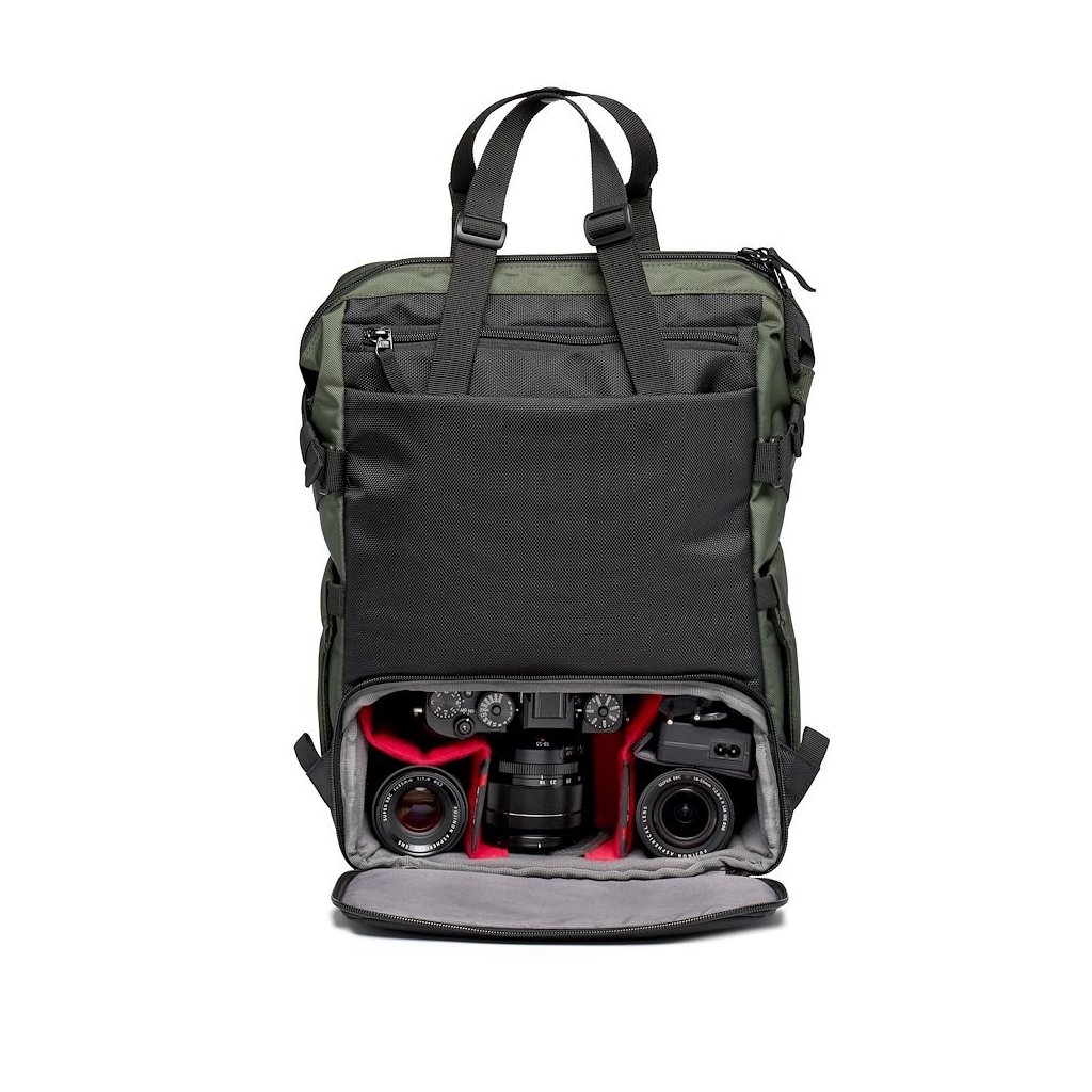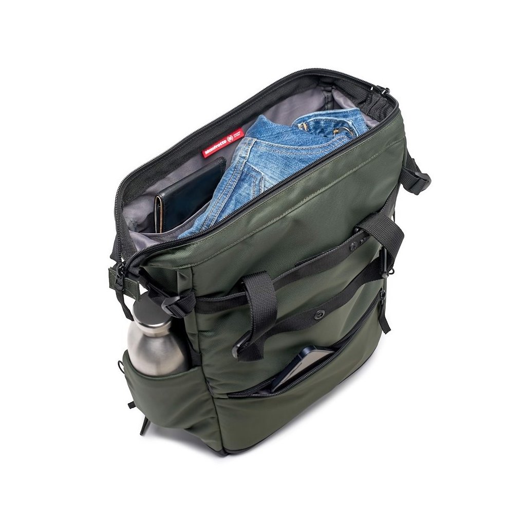 Brašna Manfrotto Street Convertible Tote je multifunkční řešení pro přenášení fotoaparátu, notebooku a osobních věcí. Podle potřeby ji rychle a jednoduše změníte na batoh. Snadno vytáhnete dva skryté ramenní popruhy umístěné v samostatné zadní kapse a připnete je do úchytů naspod batohu. Ramenní popruhy jsou polstrované, s nastavitelnou délkou pro pohodlné nošení. Brašna Street Convertible Tote je ideální pro dojíždění do práce, na cesty i každodenní používání. Tato víceúčelová taška, otevíraná z horní části na zip stylem „doktorské brašny“, nabízí prostorný hlavní oddíl, přístupný obzvlášť velkým otvorem pro pohodlné ukládání všech osobních věcí. Do polstrované přihrádky na notebook umístěné uvnitř hlavního oddílu se snadno vejde až 14palcový notebook. Spodní komora se samostatným přístupem, uzavíratelná na zip, pojme menší bezzrcadlovku s aps-c snímačem a 1–2 další malé objektivy. Polstrovaná komora pro fotoaparát je vybavena zcela novým ochranným systémem Manfrotto M-Guard™. Je vyrobena ze speciální vysokohustotní EVA pěny a poskytuje i při mimořádně malé tloušťce stěn výjimečnou ochranu proti nárazům. Všestranně přizpůsobitelné přepážky umožňují maximálně využít prostor a zároveň dokonale chrání fotografické vybavení uložené uvnitř. Brašna je také vybavena bočním úchytem pro malý stativ na jedné straně a držákem na láhev s vodou na straně druhé. Na přední straně je umístěna praktická vnější kapsa, abyste měli základní věci vždy po ruce. Dva ramenní popruhy jsou navíc, v režimu batohu, doplněny o držák pro chytrý telefon a úchyt na malý stativ, abyste měli své tvůrčí pomůcky vždy pohodlně na dosah. Brašna Manfrotto Street Convertible Tote je vyrobená z vodoodpudivého materiálu aby účinně chránila vybavení uložené uvnitř. Pro zvětšení prostoru a pohodlnější používání lze také brašnu doplnit pouzdrem na smartphone Manfrotto Street Crossbody Pouch (prodává se samostatně).Dodatočné parametre