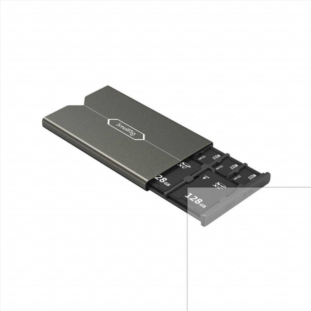 SmallRig Memory Card Case for SD and Micro SD (TF) 2832B is an auxiliary product for photography enthusiasts. It can store three SD Cards and six Micro SD Cards, which is convenient for keeping the memory cards of cameras, action cameras, and drones. Each memory card has an independent safe space, which can quickly and safely slide into the card slot for storage. Card slots with printed names of compatible cards are for quick identification. It’s compact and easy to store. The outer shell is made of rugged aluminum alloy, and the inner case is made of ABS+PC material. It uses a pull-out structure to facilitate quick access to internal items.