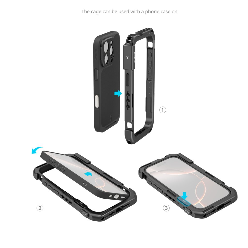 - Dedicated mobile video cage designed for the iPhone 16 Pro Max, compatible with protective cases