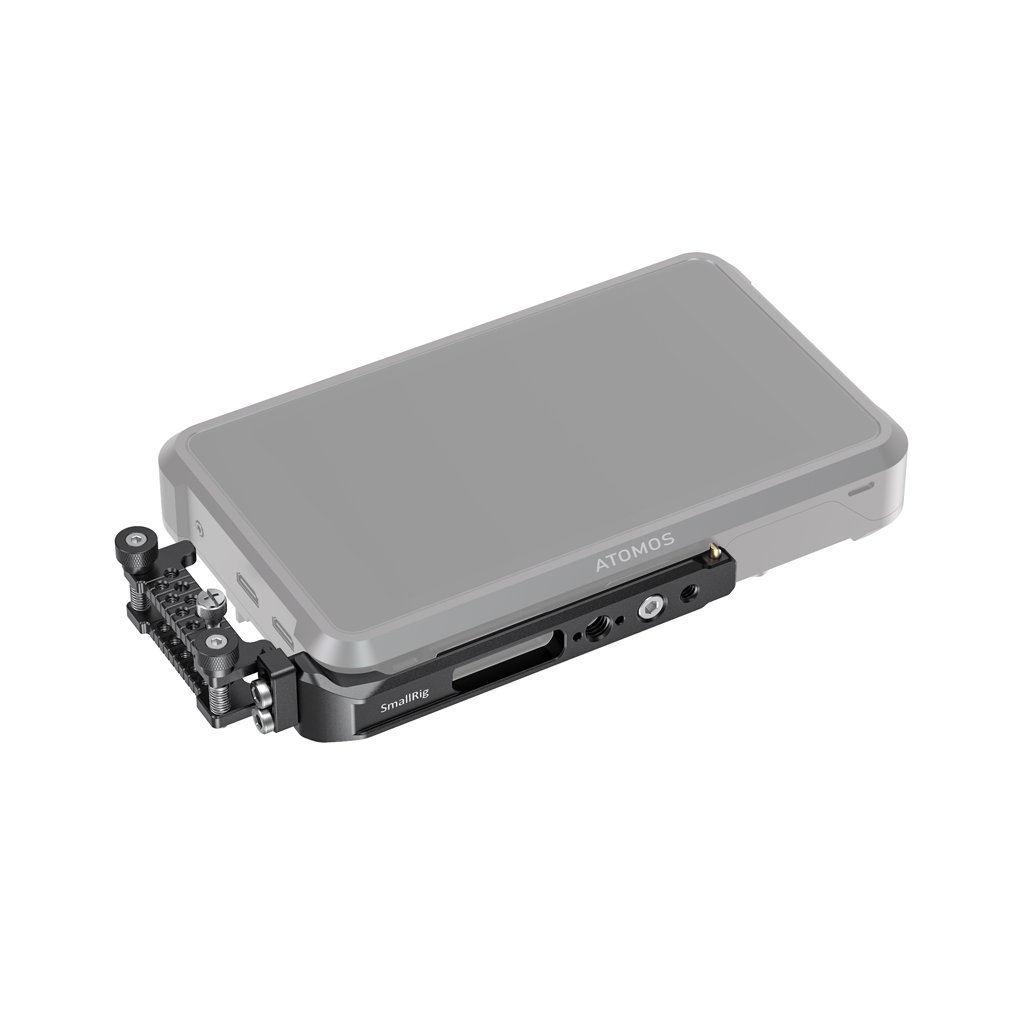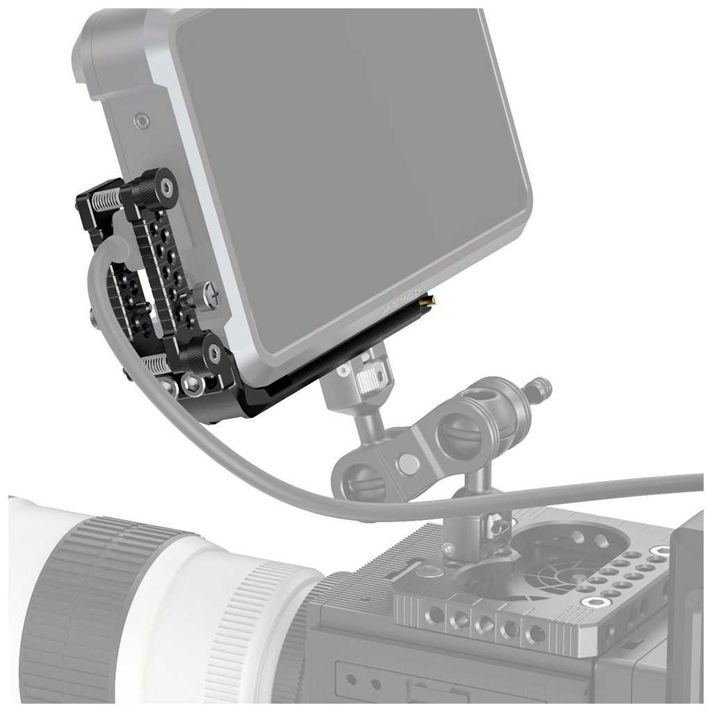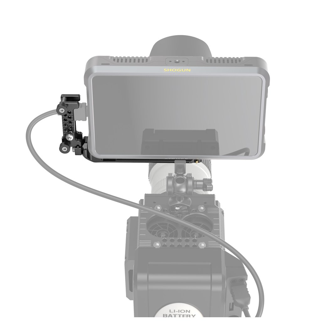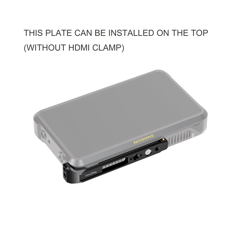 SmallRig Mounting Plate and HDMI Cable Clamp for Atomos Shogun 7 CMA2487 enables you to easily and safely mount the monitor to the camera rig. The plate mounts to the bottom of Shogun 7 using the included 1/4"-20 screw and the locating pins on the plate interface with the monitor's locating holes to prevent the plate from twisting.