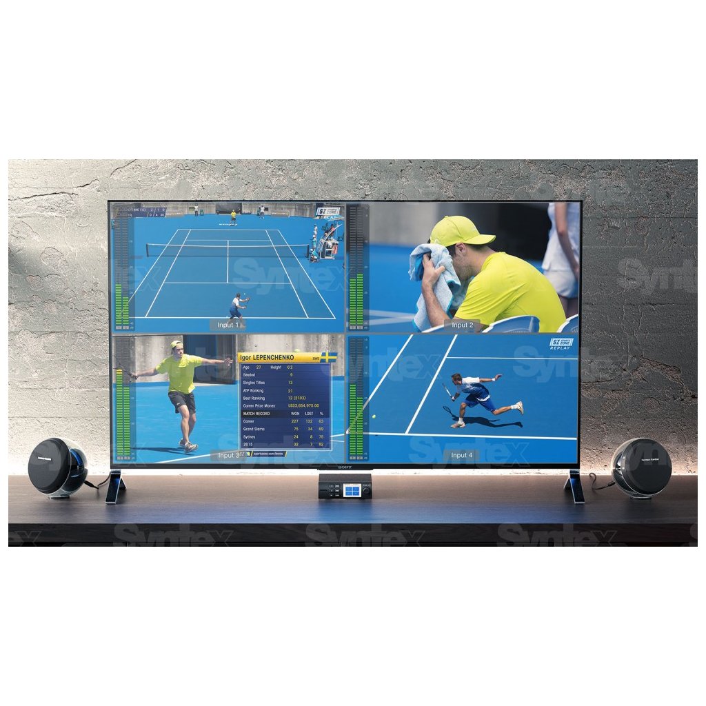 Customers can output to either regular 1080 HD or high resolution 2160p Ultra HD screens. Because Ultra HD runs at 3840 x 2160, which is four times the resolution of regular 1080 HD, the images are extremely sharp. This means when customers use it with an Ultra HD monitor, they get 4 full resolution 1080 HD views all at the same time on the same monitor, with each view being full resolution HD with no scaling. When this feature is used with very large screen consumer televisions, extremely high quality master control monitoring systems can be built at very low cost.