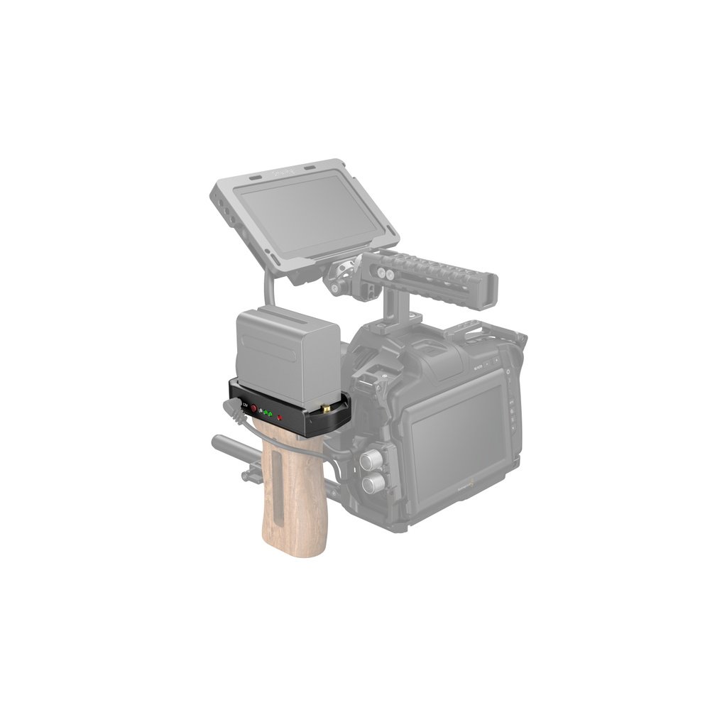 SmallRig NP-F Battery Adapter Plate Professional Edition 3168 is designed to enable NP-F batteries on the market (including original Sony batteries and third-party batteries) to power BMPCC 4K/6K and various mirrorless cameras. The plate comes with a self-locking button for quick and secure battery installation, and a 1/4 threaded hole for easy attachment to cage. On the side there are DC 8V and 12V output and a Type-C port which can output current or charge NP-F battery. All ports are designed with short circuits protection to avoid damage to the camera. In addition, it features LED lights indicating battery connection and battery life.