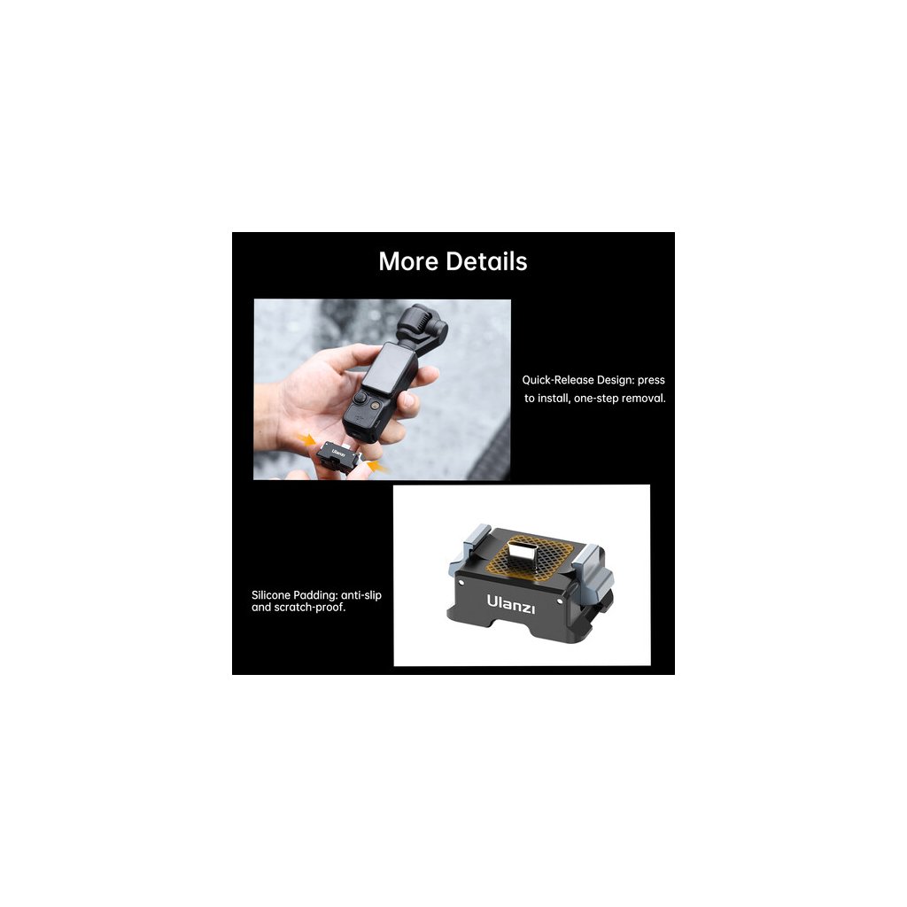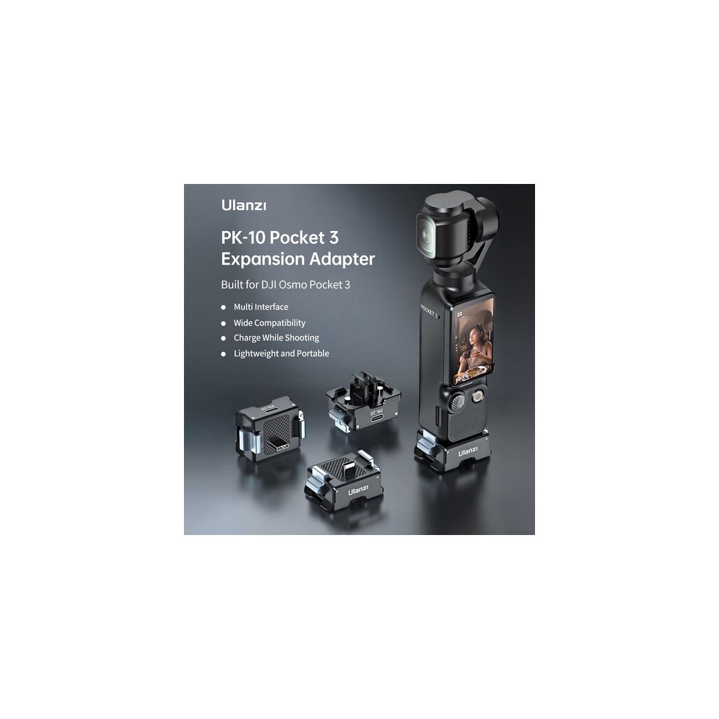 Ulanzi PK-10 USB-C Baseplate for DJI Osmo Pocket 3 – 2-prong aluminum alloy mount with pass-through charging port, magnetic quick-switch design, ultra-light 1.2 oz for seamless on-the-go filming.