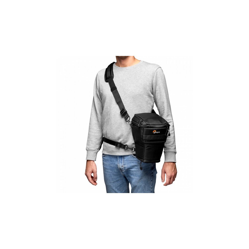 Designed for speed and flexibility, the Lowepro ProTactic TLZ 70 AW is a top-loading holster bag that accommodates a DSLR with a 24-70mm f/2.8 lens and hood. Its expandable design and 4-way carry options—shoulder, holster, chest harness, or belt—ensure adaptability to various shooting scenarios.
