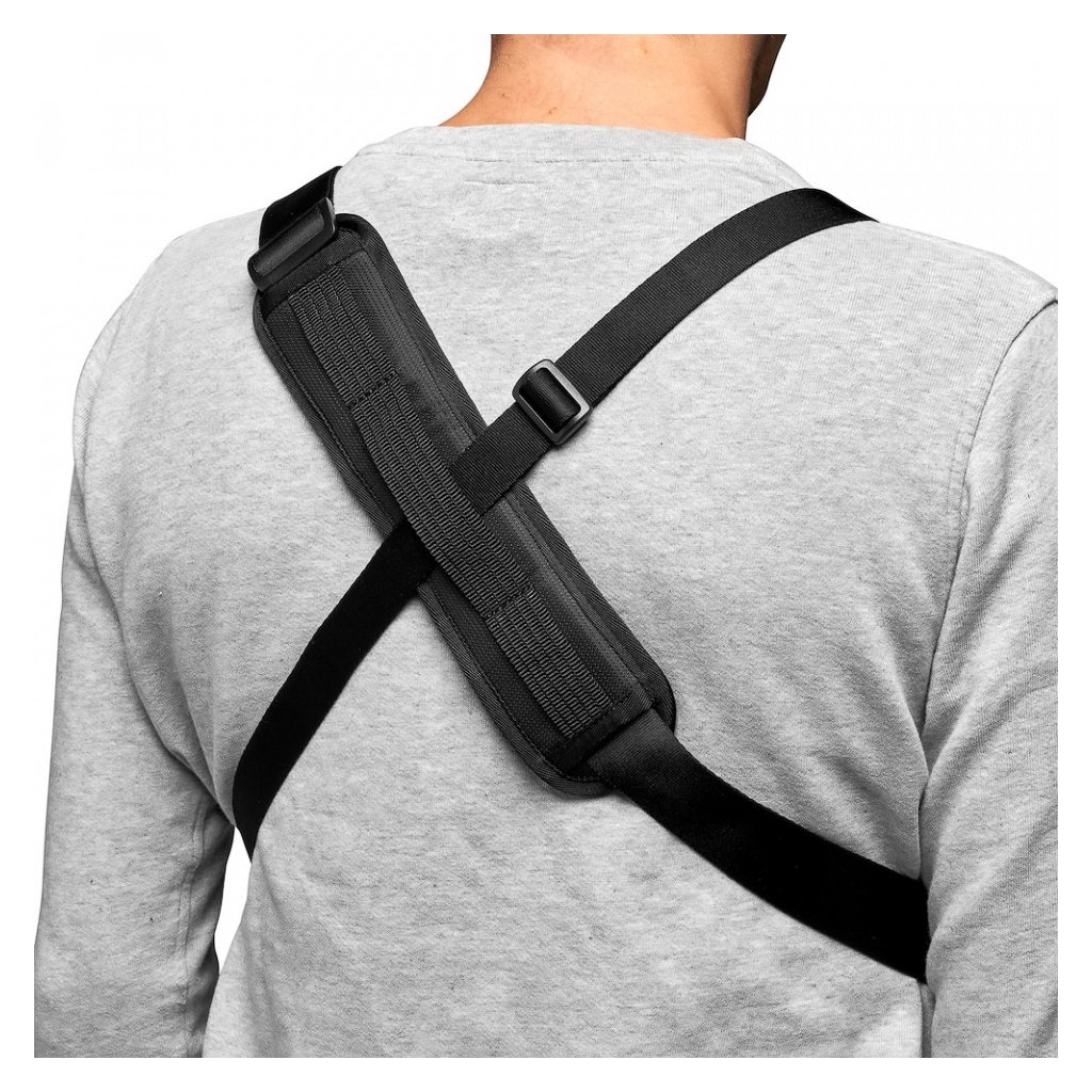 Wear it 4 ways: shoulder, holster style, chest harness or on belt. It includes two straps and the chest harness can be worn under a backpack harness.