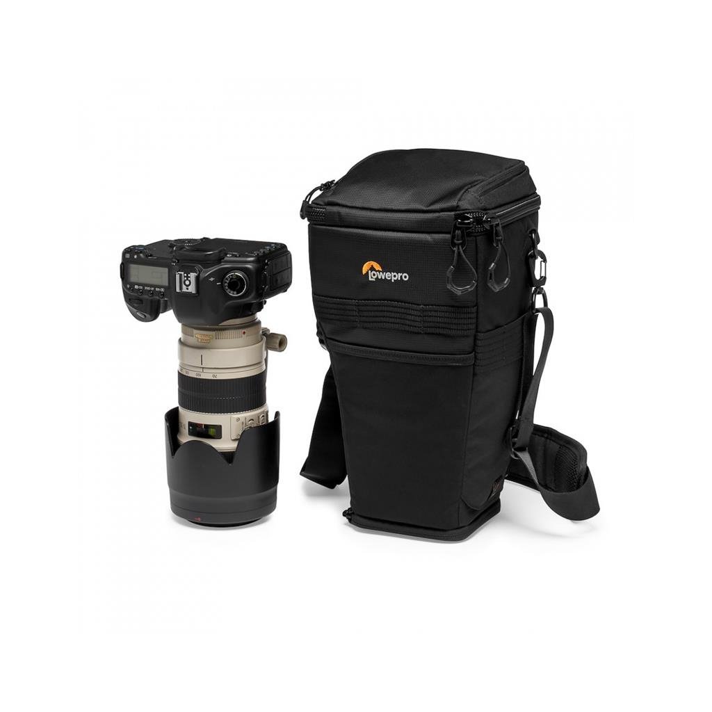 This high-performance toploader offers an expandable structure that holds a DSLR with 70-200mm f/2.8 and lens hood with portrait grip.