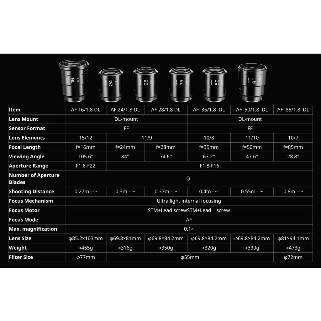Kód: AAF 16/24/28/35/50/85MM F1.8 DLXPodrobný popis