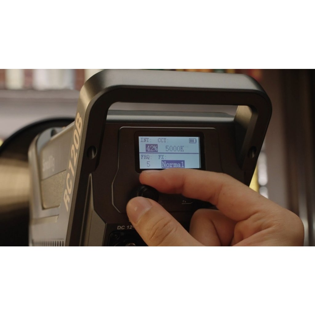 SmallRig RC120B (3615) is the first generation point-source LED light from SmallRig. With the latest COB technology and SmallRig's industrial design excellence, the RC120D is unique: it offers a high-reflectance hyper reflector, at a distance of 1 meter, the center illuminance reaches 52,800 lux, far beyond the same level of products on the market. The reflector also offers high color fidelity (CRI 95+, TLCI 96+), standard Bowens mount, 9 built-in light effects (Paparazzi, Firework, Lightning, Fault Bulb, TV, Breath, Flash, Party, Flame), remotely controlled brightness using SmallGoGo app. RC120B has a color temperature range of 2700K-6500K (+/- 200K) and 52,800 lux illumination (with reflector).