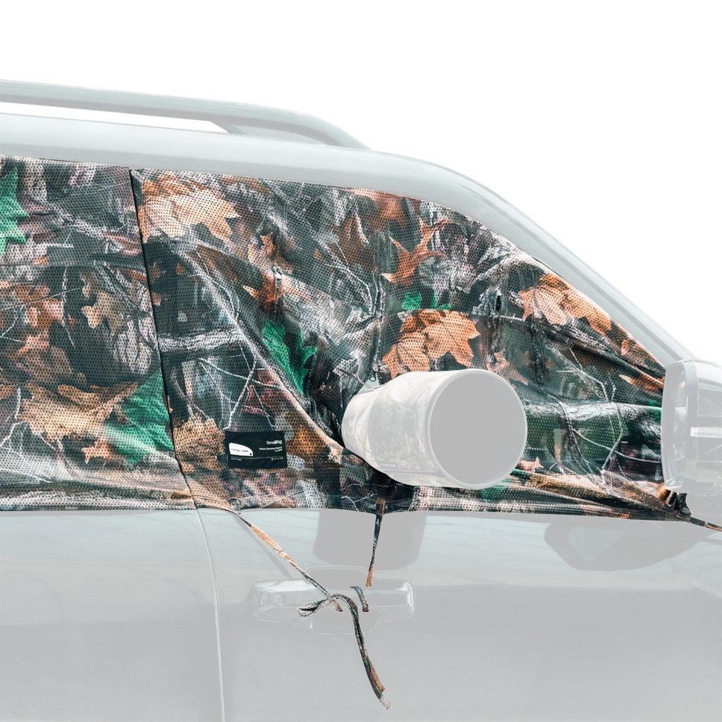 Multiple bidirectional zippers provide quick access to observation windows, enabling you to scout your surroundings without removing the curtain. The design allows for full window mobility, so you can easily adjust ventilation in extreme heat or cold. A custom rearview mirror cutout ensures driving visibility, allowing you to stay mobile without needing to remove the curtains.