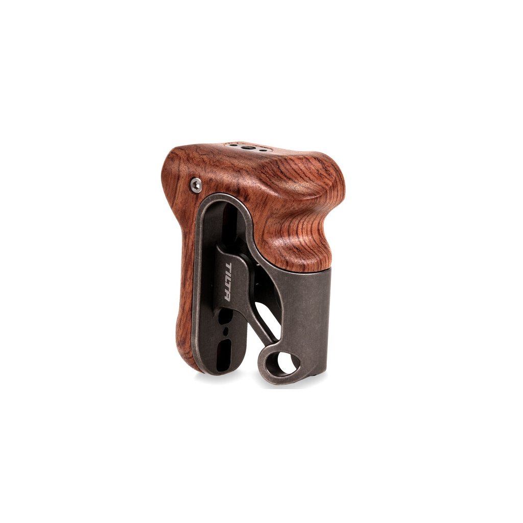 The Tilta TA-RWH Right-Side Wooden Handle (Tactical Gray) is a premium, contoured walnut grip with black aluminum bracket designed for right-side use on legacy Tiltaing camera cages – delivering all-day shooting comfort and classic aesthetics when paired with the correct separately sold adapter (Type IV/V/VI NATO or rosette).