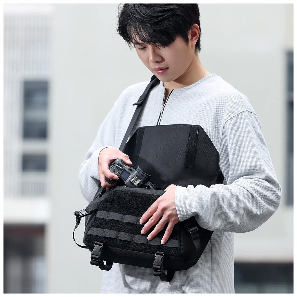 Stay agile and organized with the Ulanzi B010 sling bag. Designed for photographers and videographers on the move, it offers a 9L capacity with customizable dividers, a water-resistant exterior, and a soft velvet interior to protect your gear. Fits a mirrorless camera, tablet, tripod, and accessories. Lightweight, stylish, and built for everyday shoots.