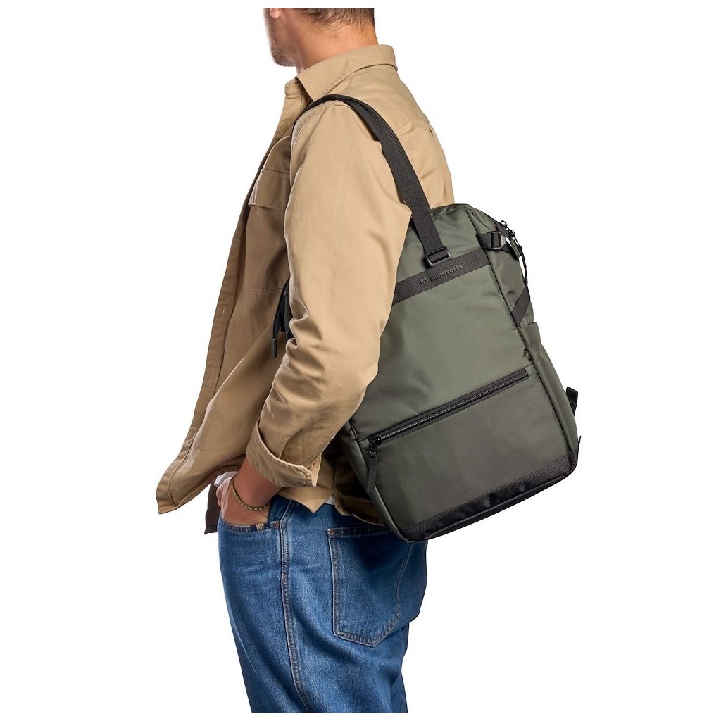 The Manfrotto Street Convertible Tote is a multifunctional solution for carrying your camera, laptop and personal belongings. Quickly and easily convert it into a backpack as needed. Easily pull out the two hidden shoulder straps located in a separate back pocket and clip them into the handles underneath the backpack. The shoulder straps are padded, with adjustable length for a comfortable fit.