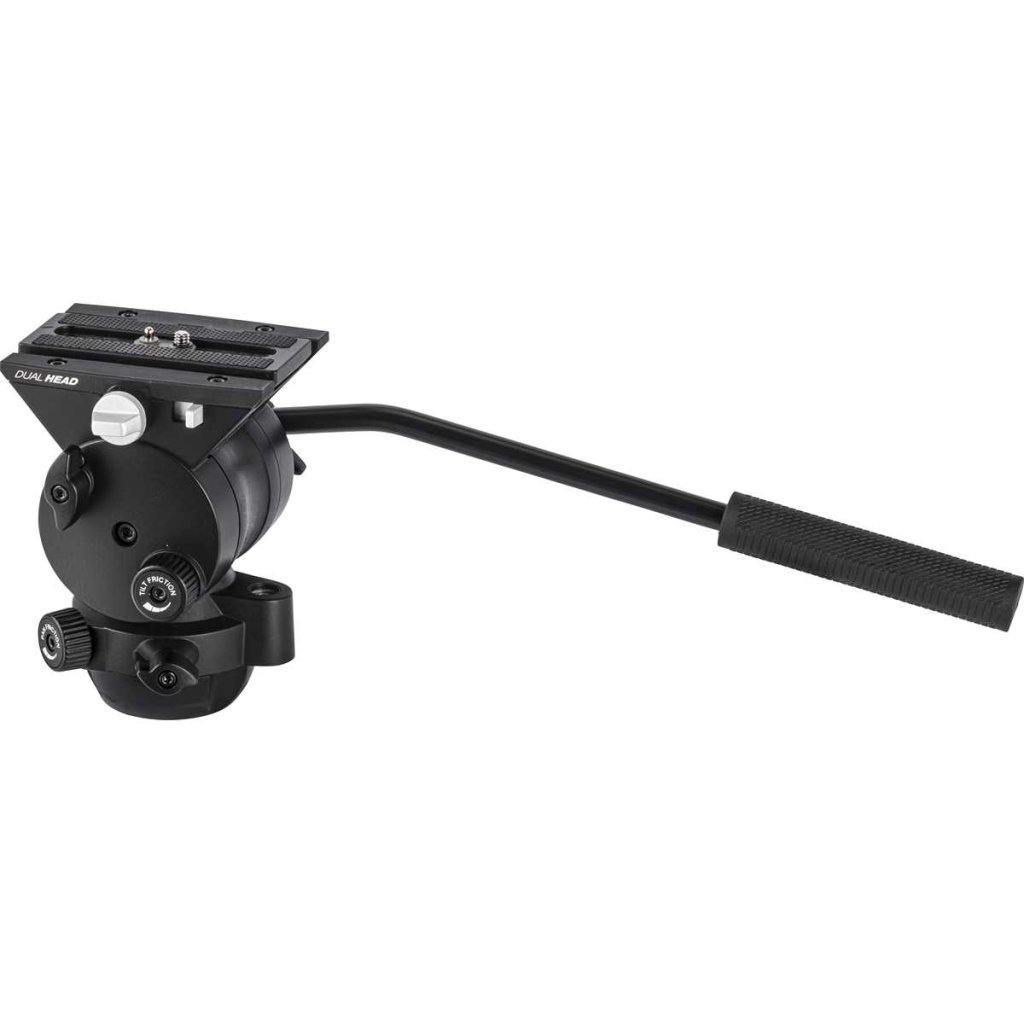 - "Dual head" supporting both 75mm bowls and flat bases of photographic tripods, sliders, etc.